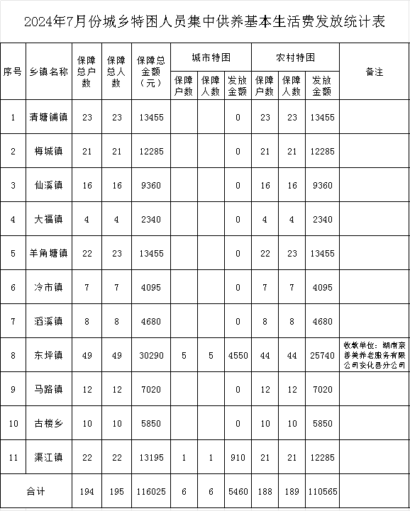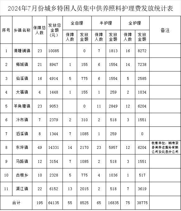 附件:1.2024年7月份城乡特困人员集中供养基本生活费发放统计表 2.2024年7月份城乡特困人员集中供养照料护理费发放统计表