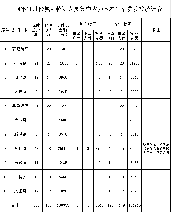 附件:1.2024年11月份城乡特困人员集中供养基本生活费发放统计表 2.2024年11月份城乡特困人员集中供养照料护理费发放统计表