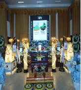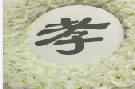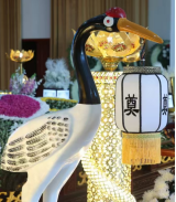 在礼厅布置绢花棺围388元、绢花背景墙200元、灯饰800元(含龙型灯柱1对200元、净瓶莲花灯柱1对200元、莲花灯3对200元、思念灯1对200元)