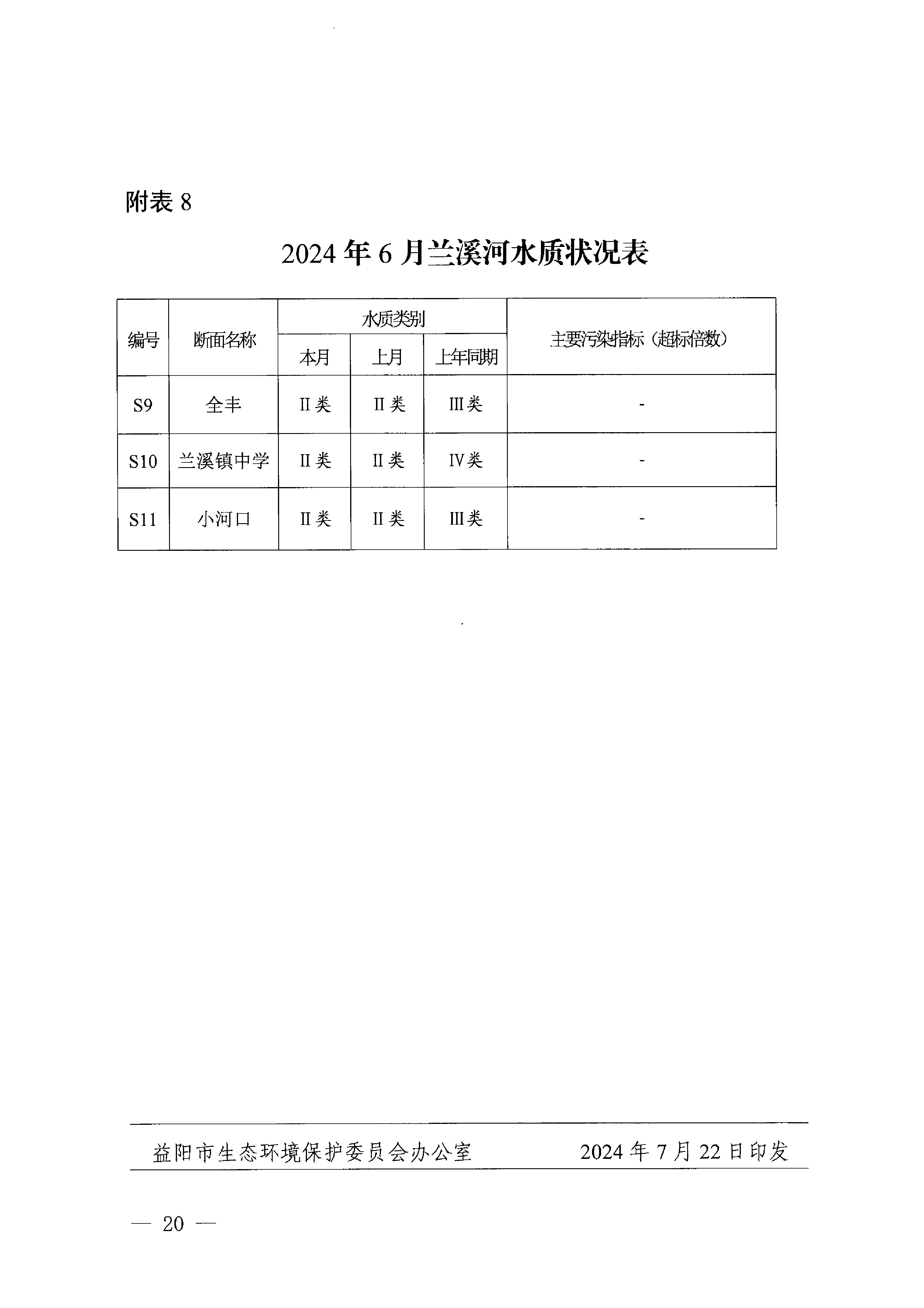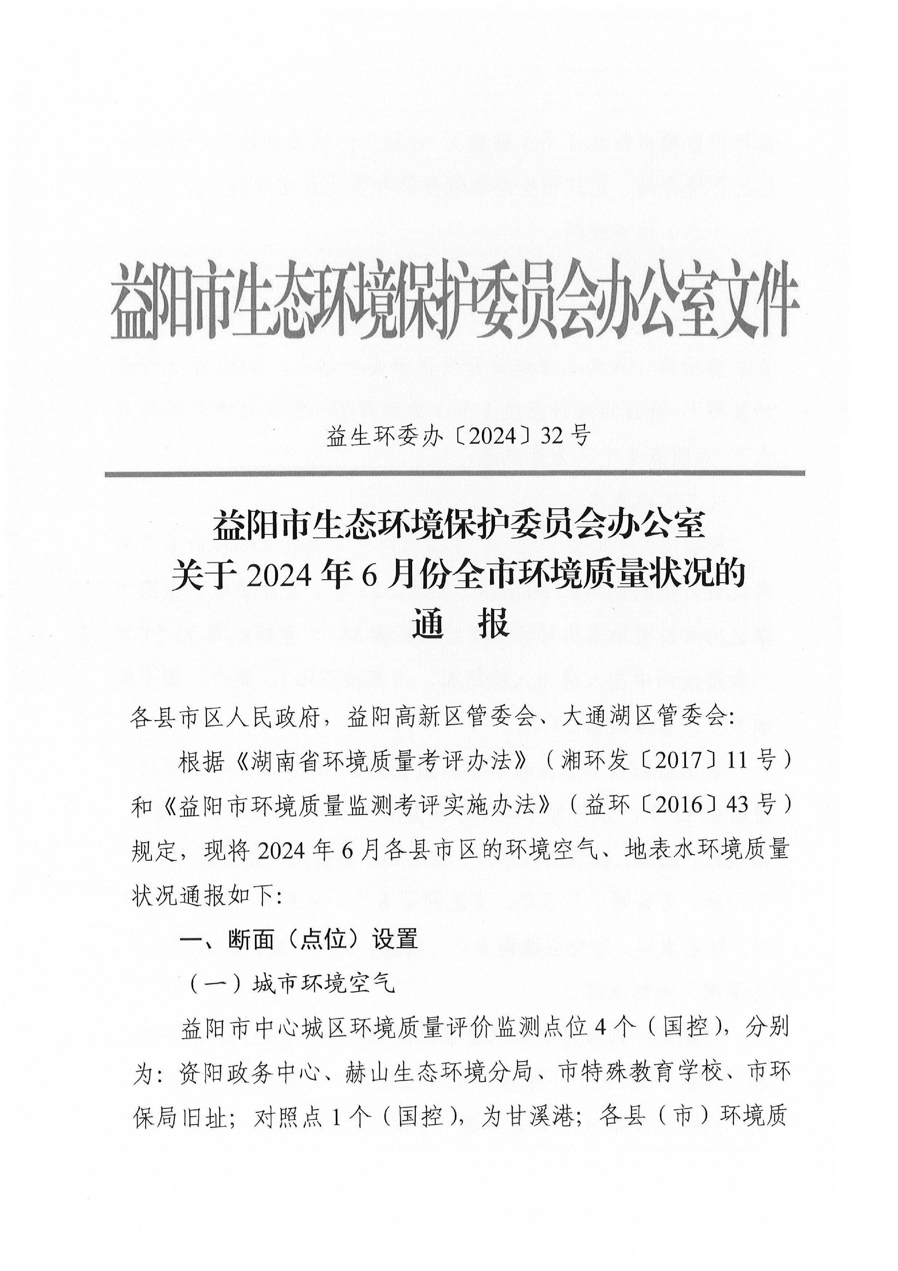 2024年6月份全市环境质量状况的通报
