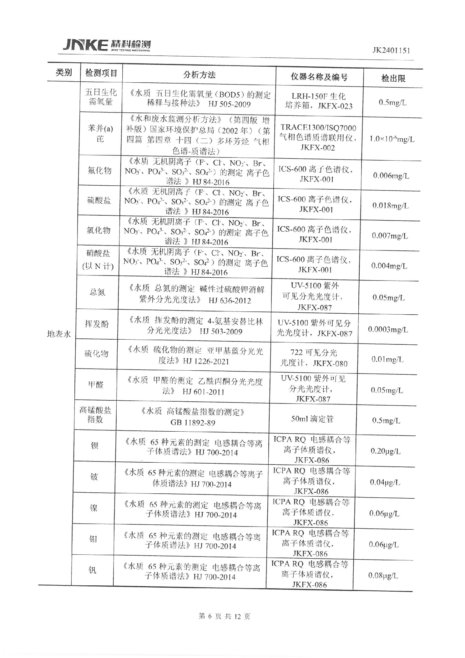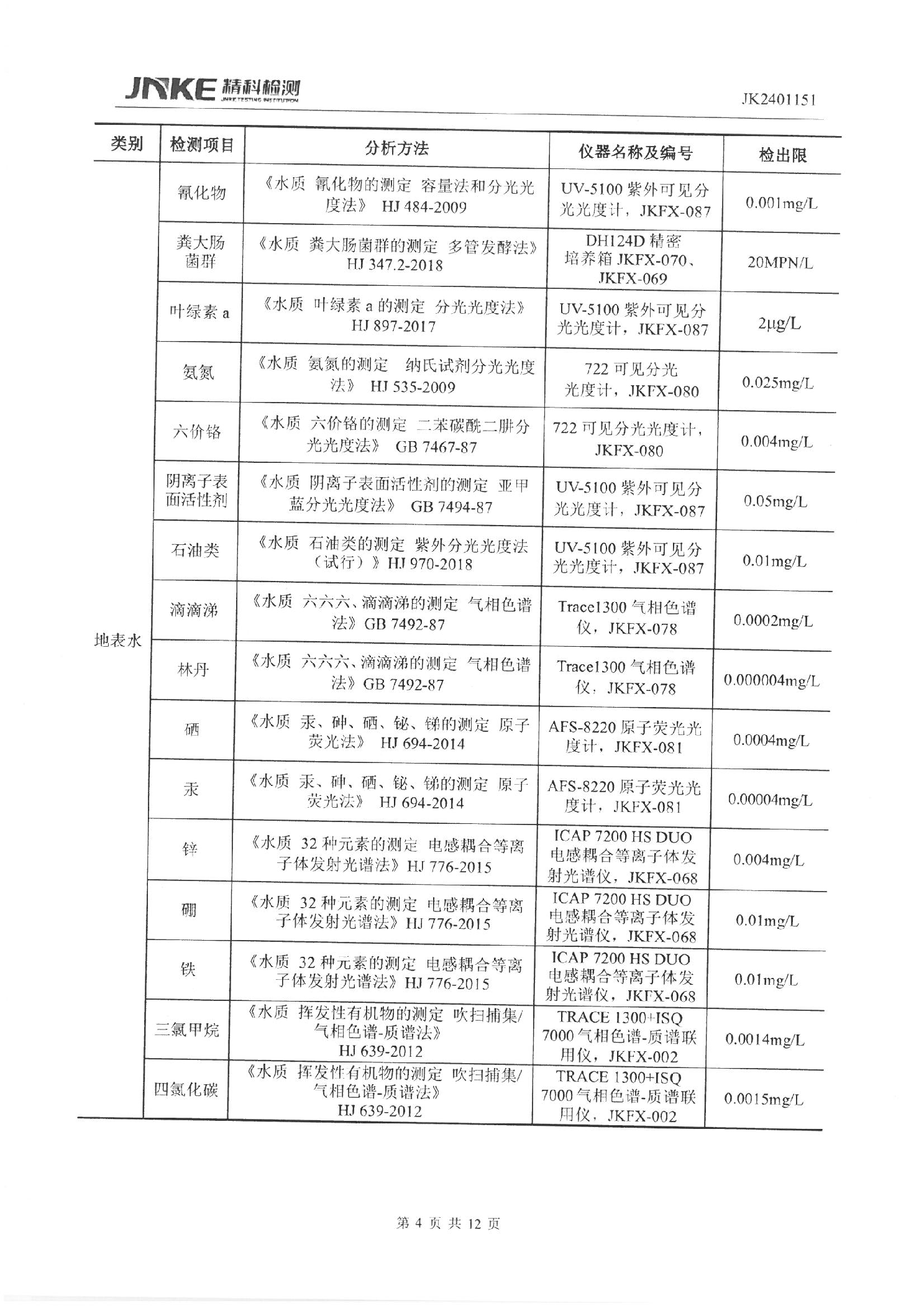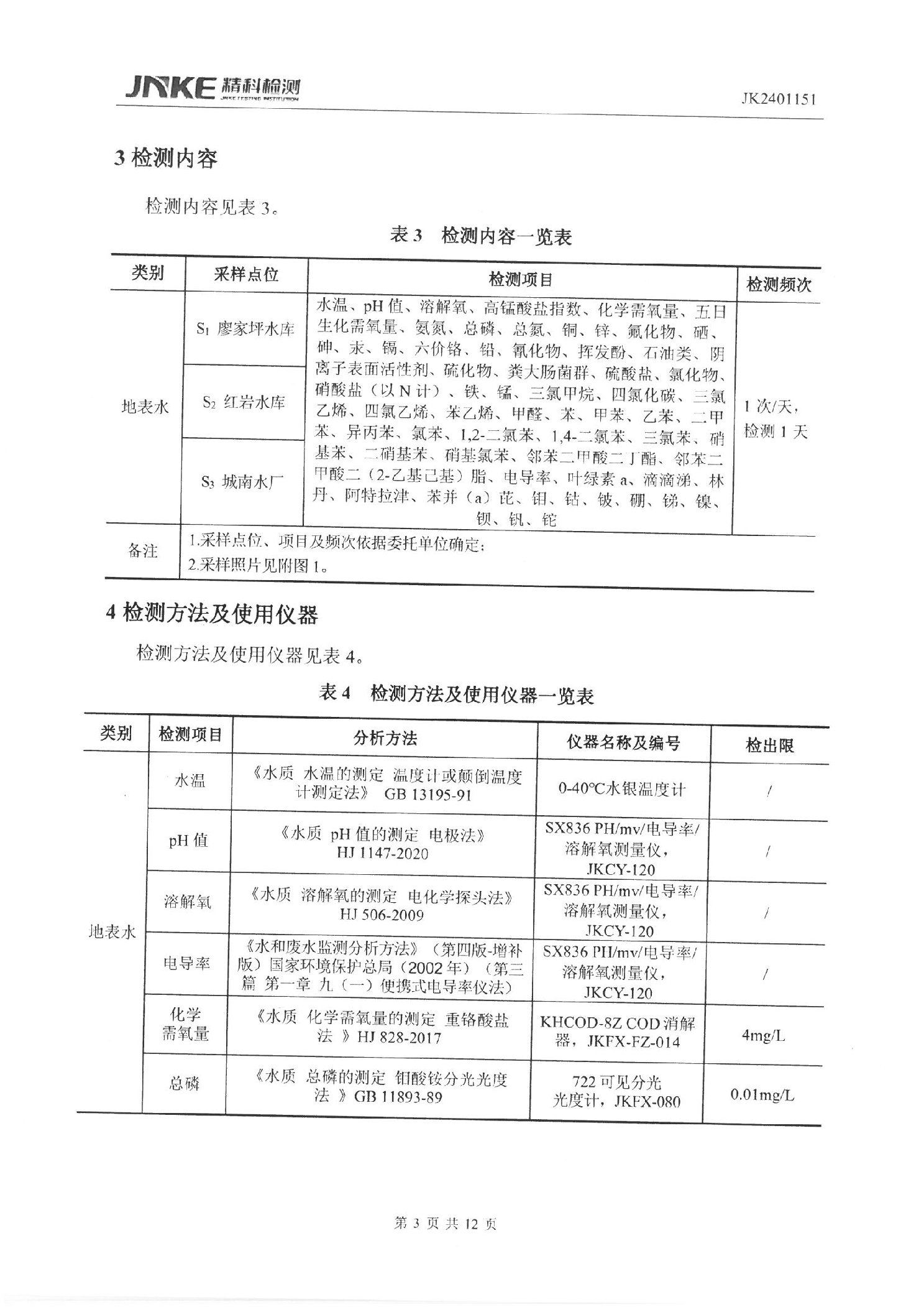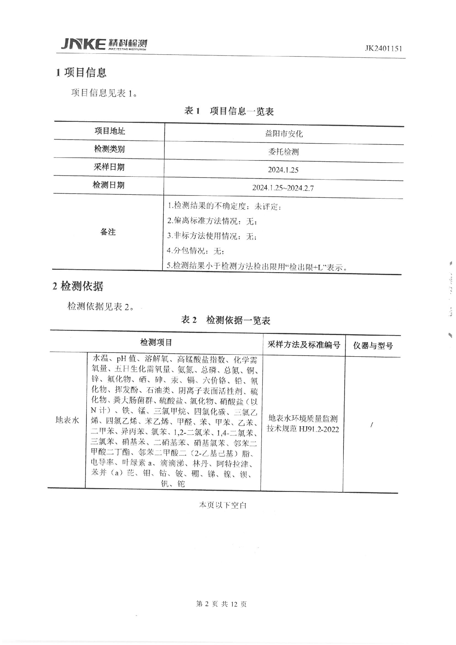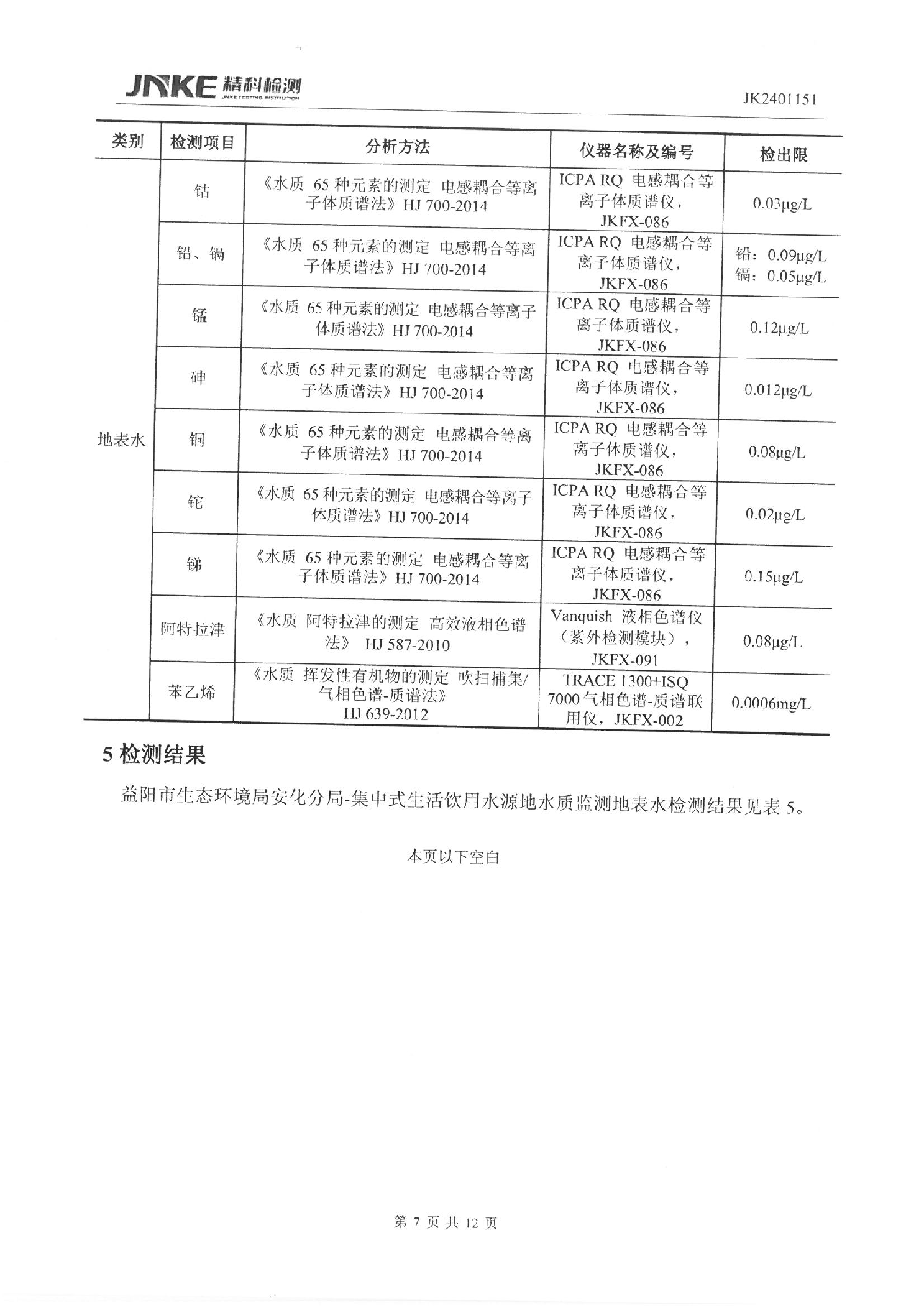 安化县2024年第一季度集中式生活饮用水源地水质监测