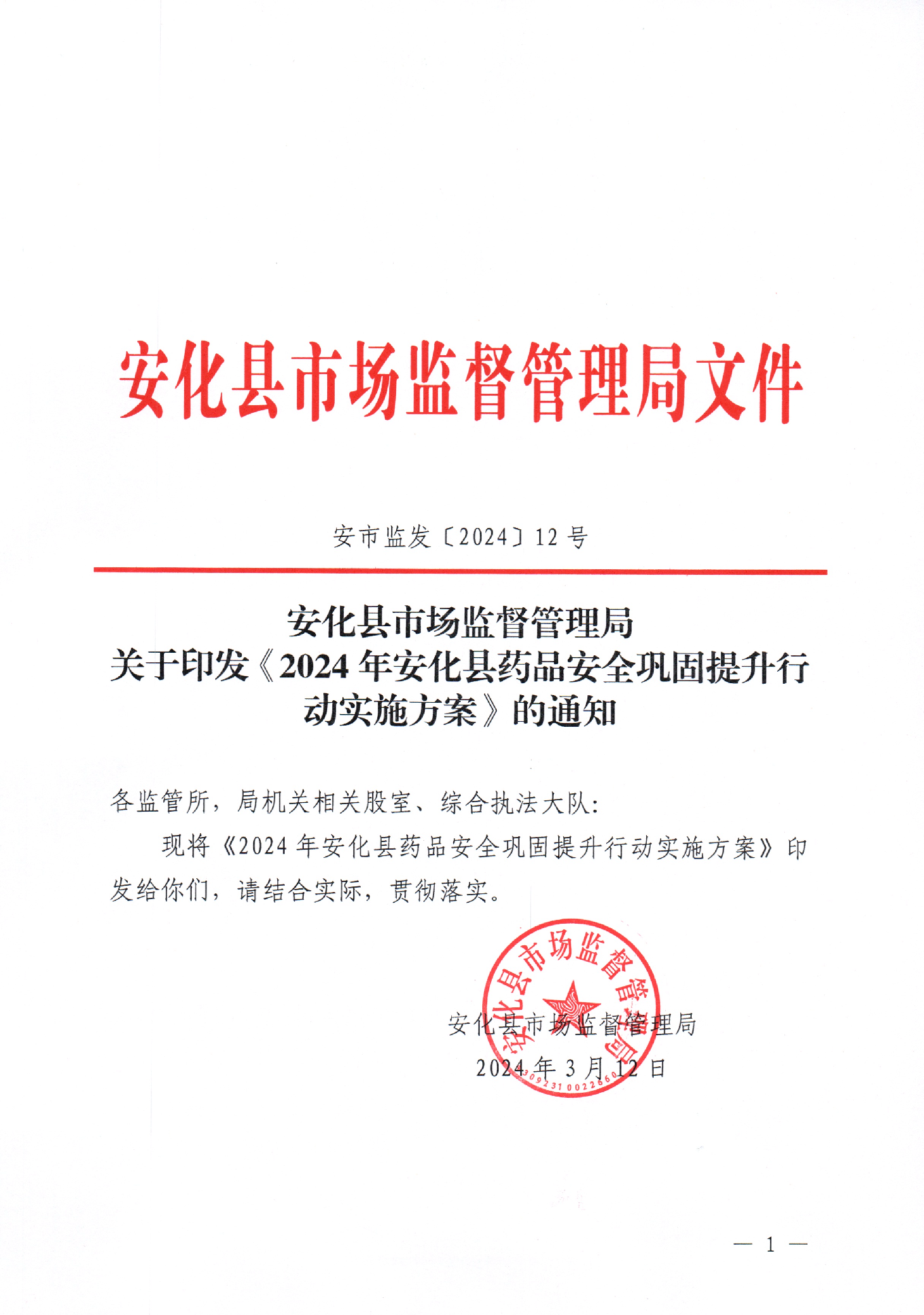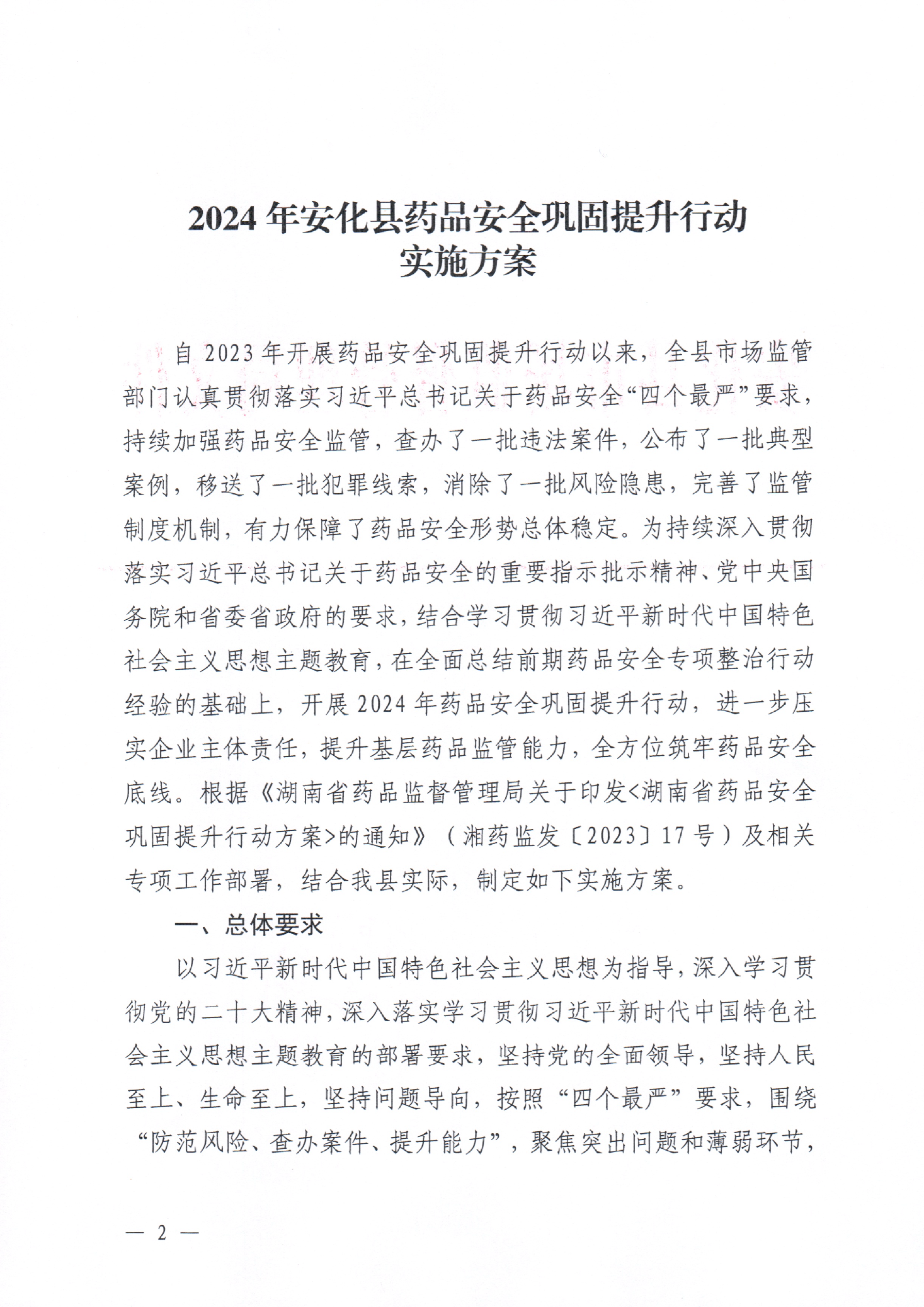2024年安化县药品安全巩固提升行动实施方案