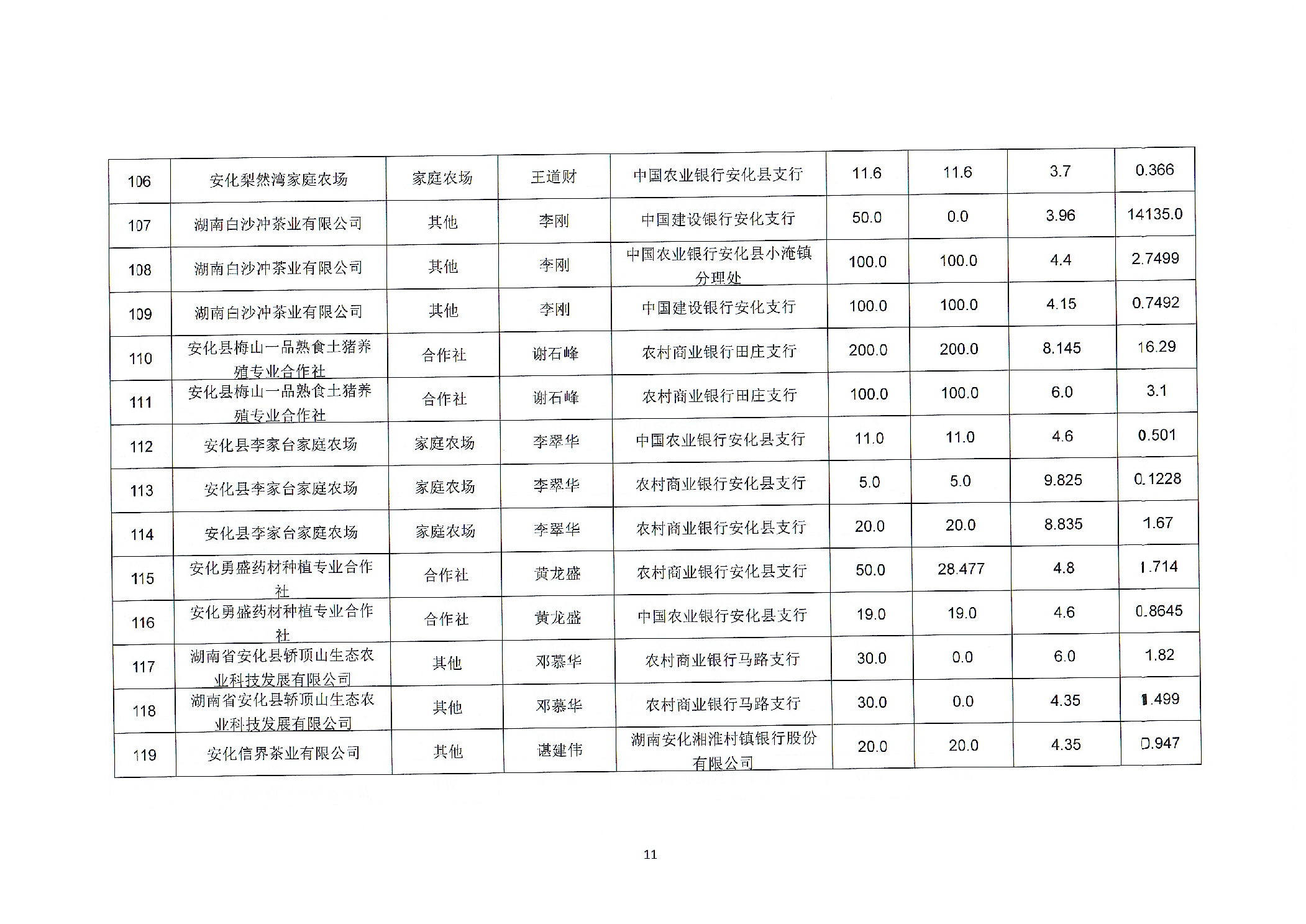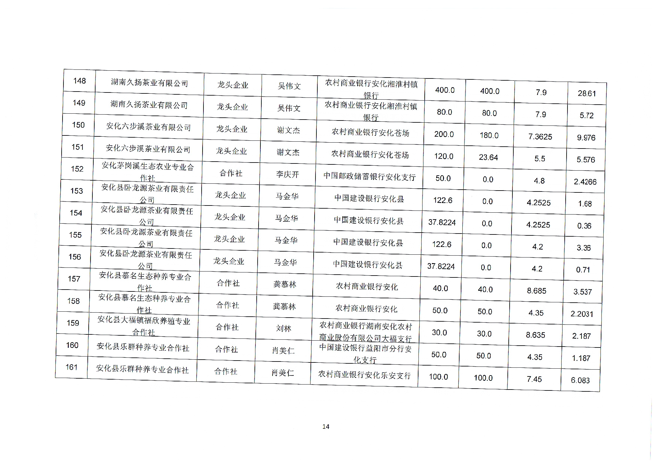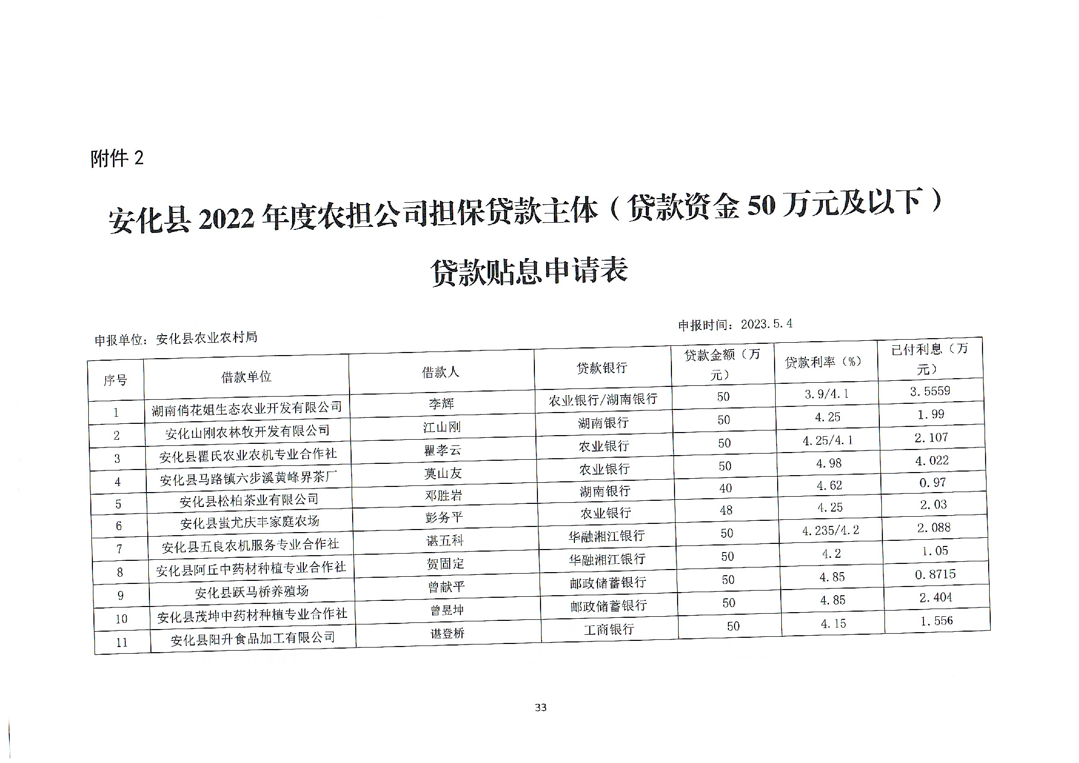 安化县农业农村局关于拟申请2022年度新型农业经营主体贷款贴息的公示