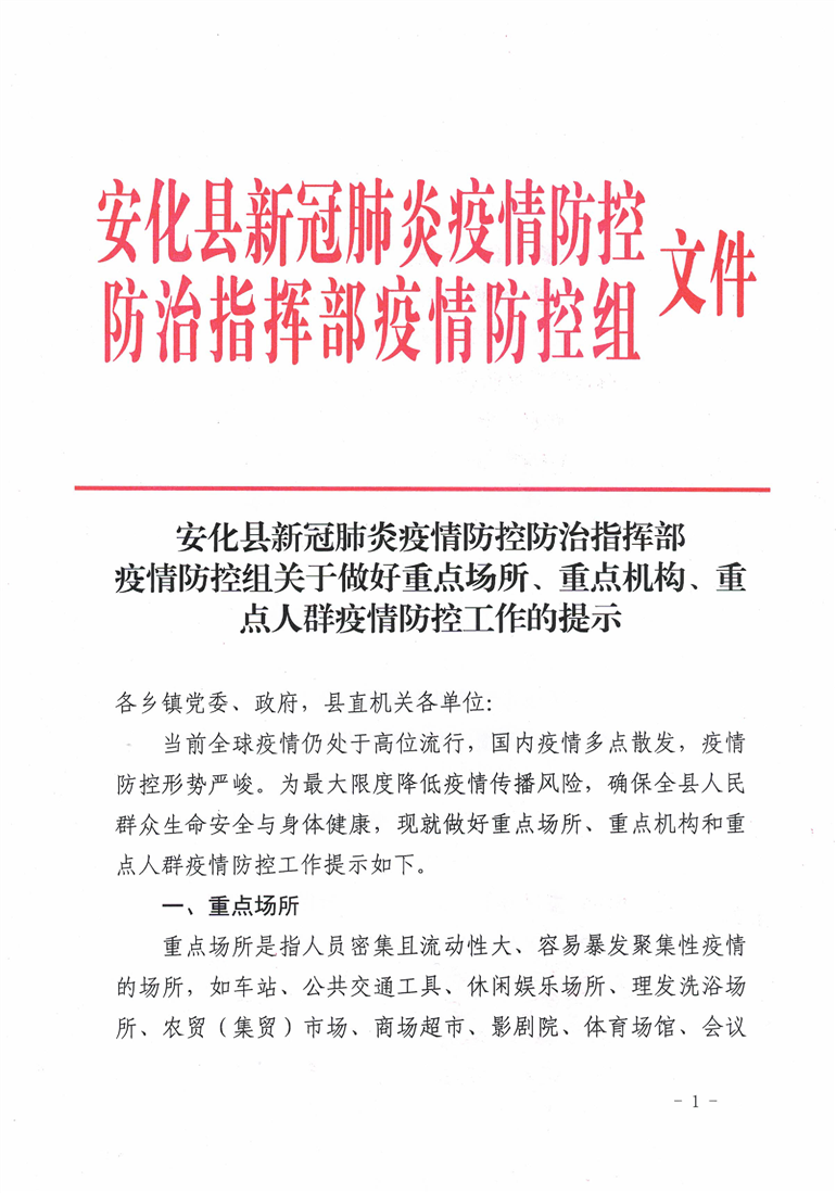 关于做好重点场所、重点机构、重点人群疫情防控工作的提示