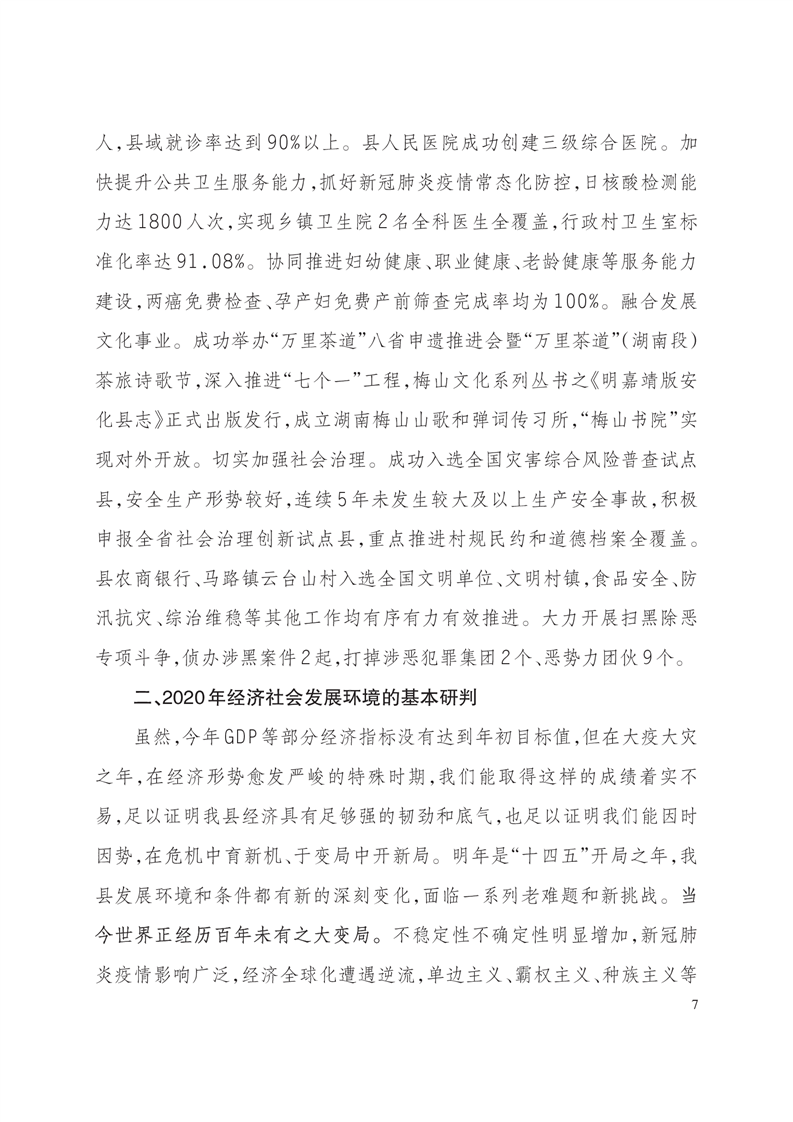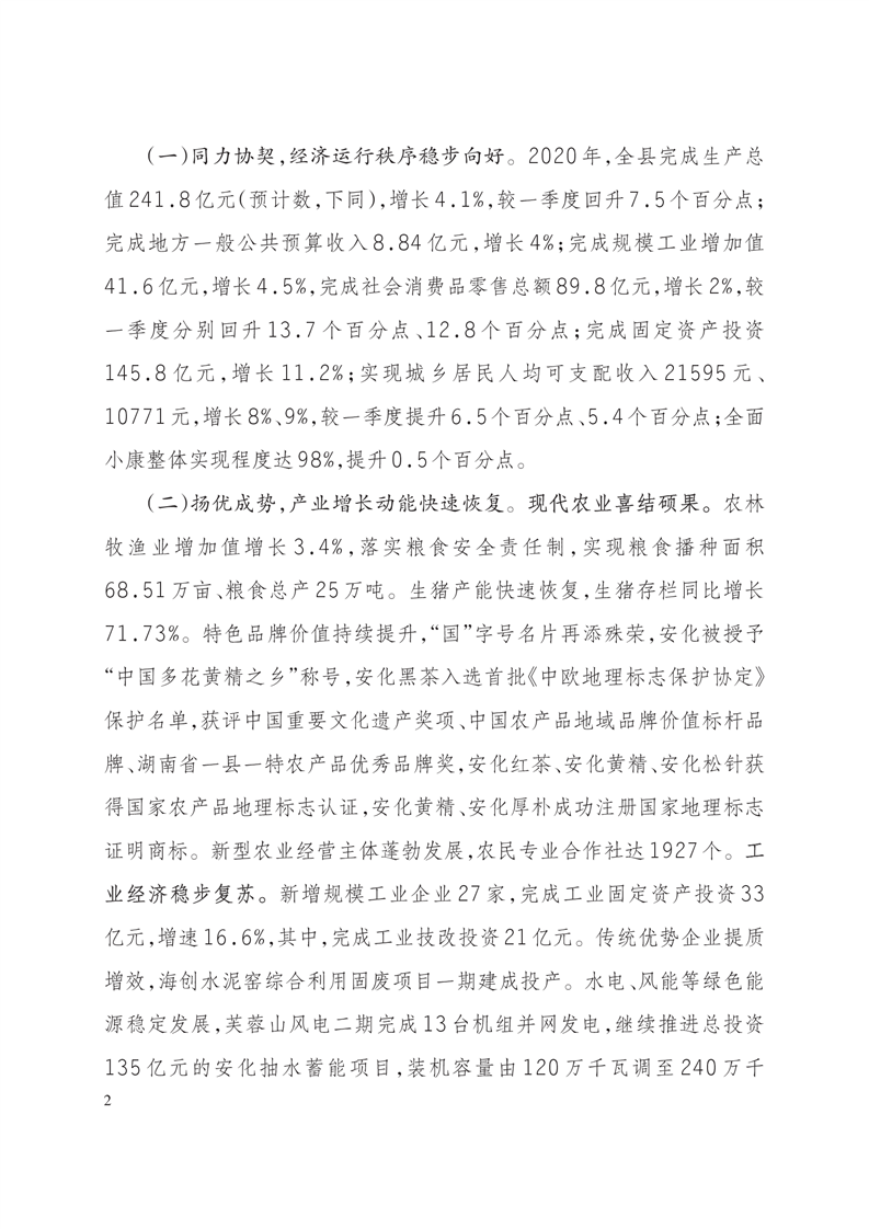 关于安化县2020年国民经济和社会发展计划执行情况及2021年国民经济和社会发展计划(草案)的报告)