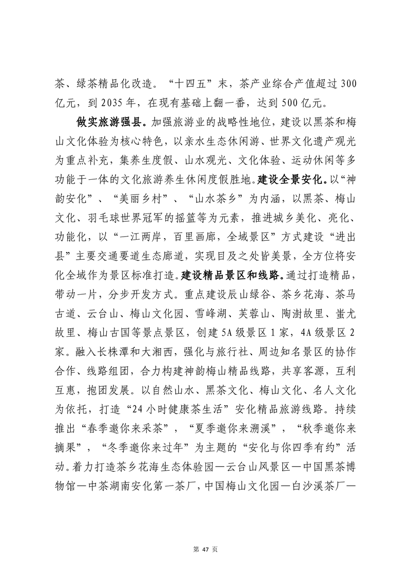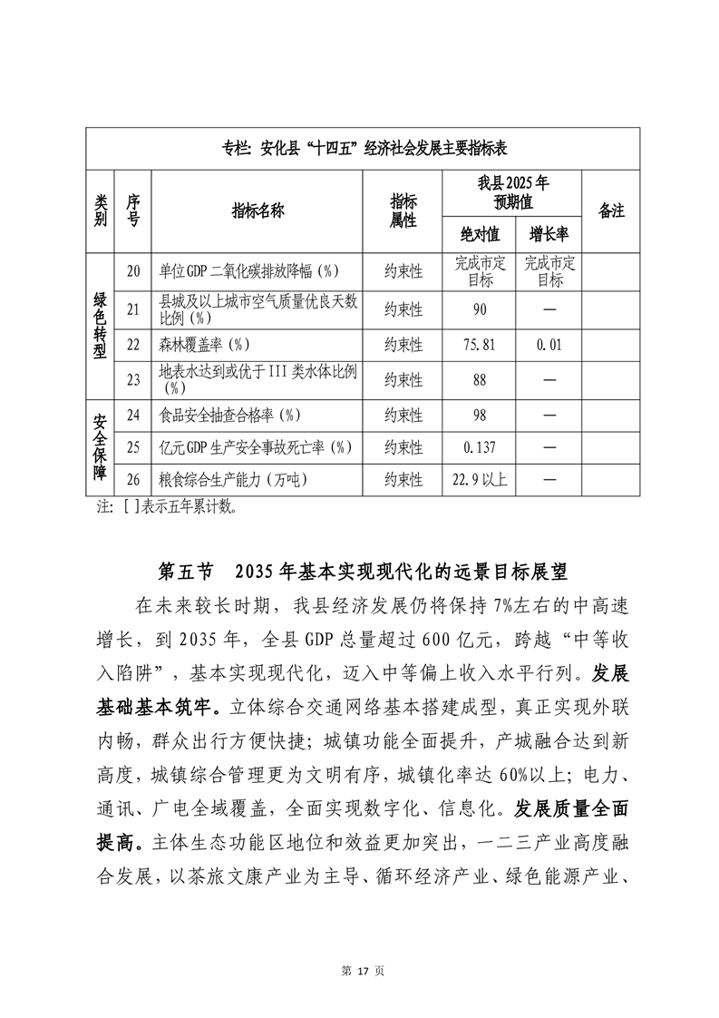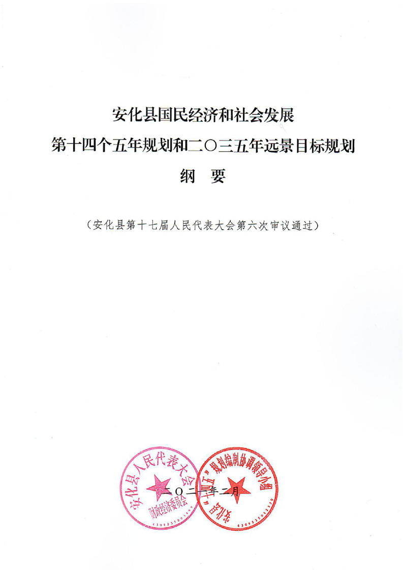 安化县国民经济和社会发展第十四个五年规划和二O三五年远景目标规划纲要