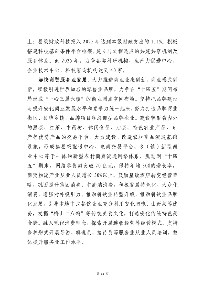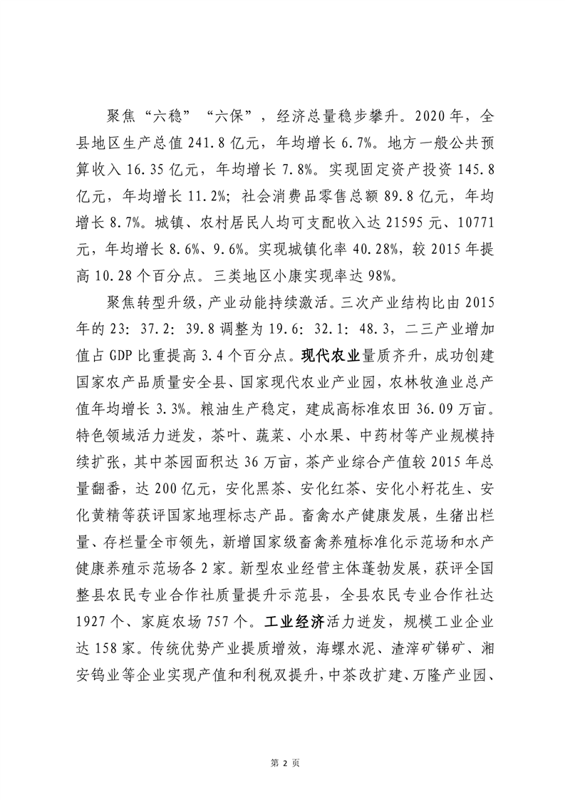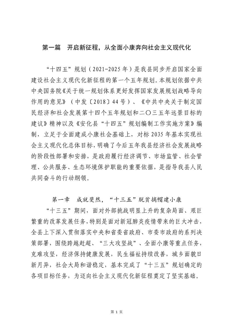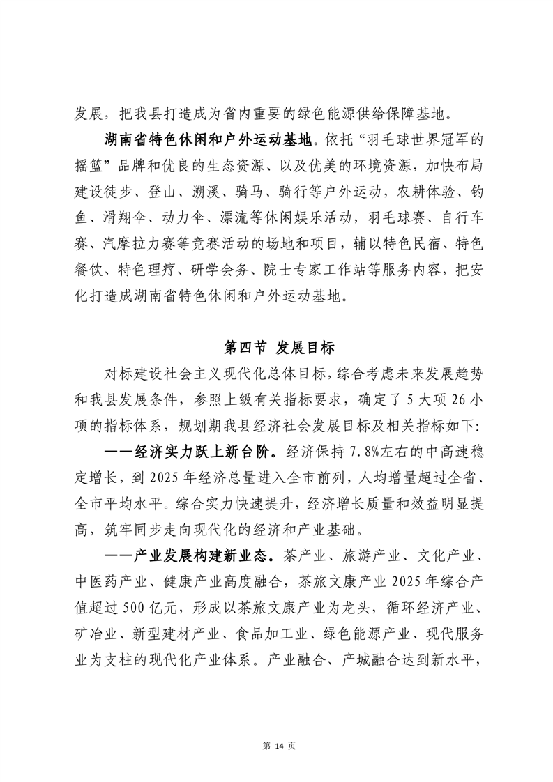 安化县国民经济和社会发展第十四个五年规划和二O三五年远景目标规划纲要