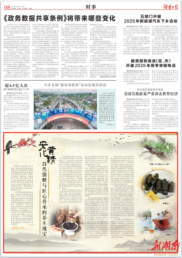 “安化黄精”先后荣获国家农产品地理标志、国家地理标志证明商标,作为湖南唯一黄精品牌,入选2022中国地理标志农产品(中药材)品牌声誉第23位、全国黄精品牌第2位,荣录农业农村部“2024年第一批农耕农品记忆索引名录”“2024年第三批全国名特优新农产品名录”。安化黄精正以品牌之力走向世界,书写“绿水青山就是金山银山”的生动实践。