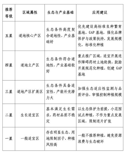通俗地说,便是把评价结果从“五星”(道地核心产区)到“一星”(一般适宜区)呈梯度划分。