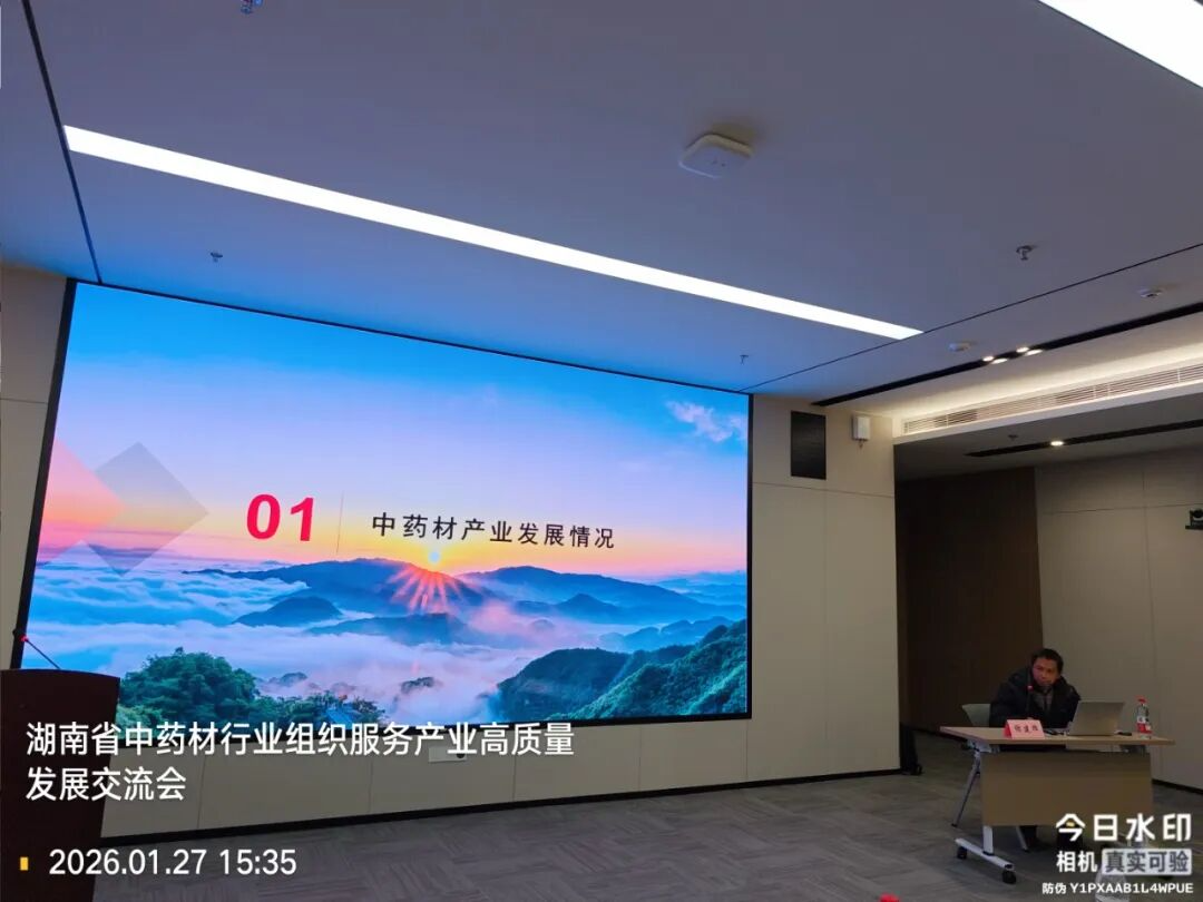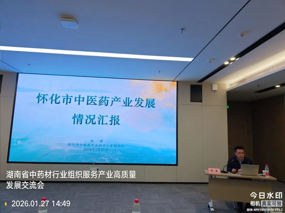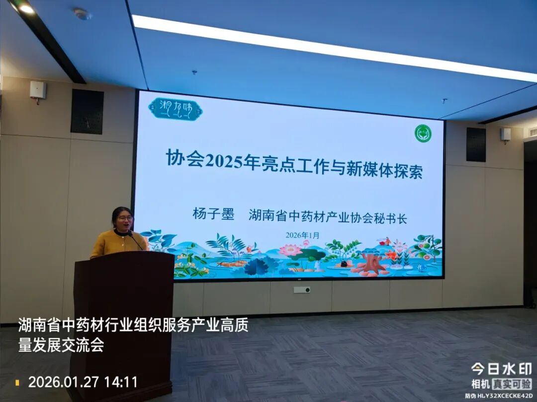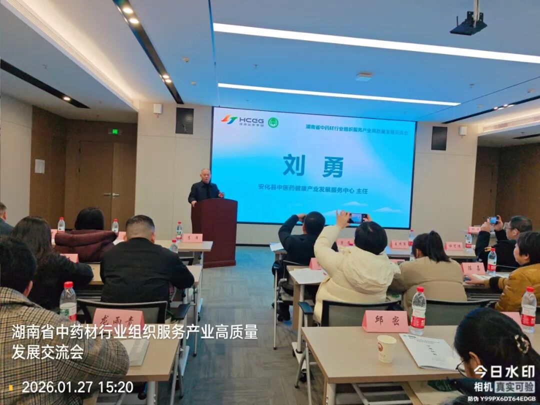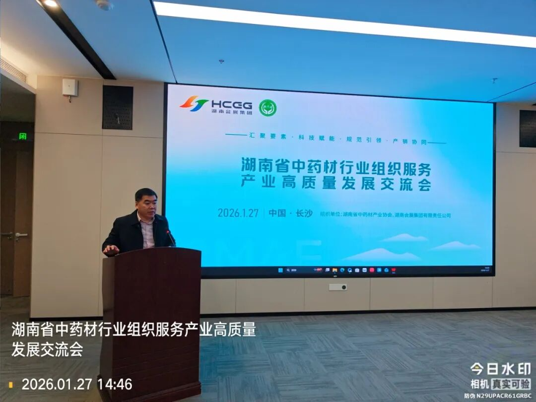 会上,湖南省中医药管理局中药发展处处长王颖异、湖南省社会组织促进会副秘书长陈小勇分别围绕我省中药材产业发展政策、社会组织管理政策进行深入解读;中国中药协会中药材种植养殖专业委员会副主任委员兼秘书长曹海禄、省中药材协会秘书长杨子墨、怀化市中医药产业链办公室副主任杨黎、安化县中医药健康产业发展服务中心主任刘勇、新化县中药材协会顾问谢建辉结合自身工作实践作经验分享;湖南会展集团有限责任公司党委书记、董事长马永忠作2026中药农业博览会推介;湖南省气象局和澧县、桂阳、隆回中药材主管部门作交流发言和产业宣传。