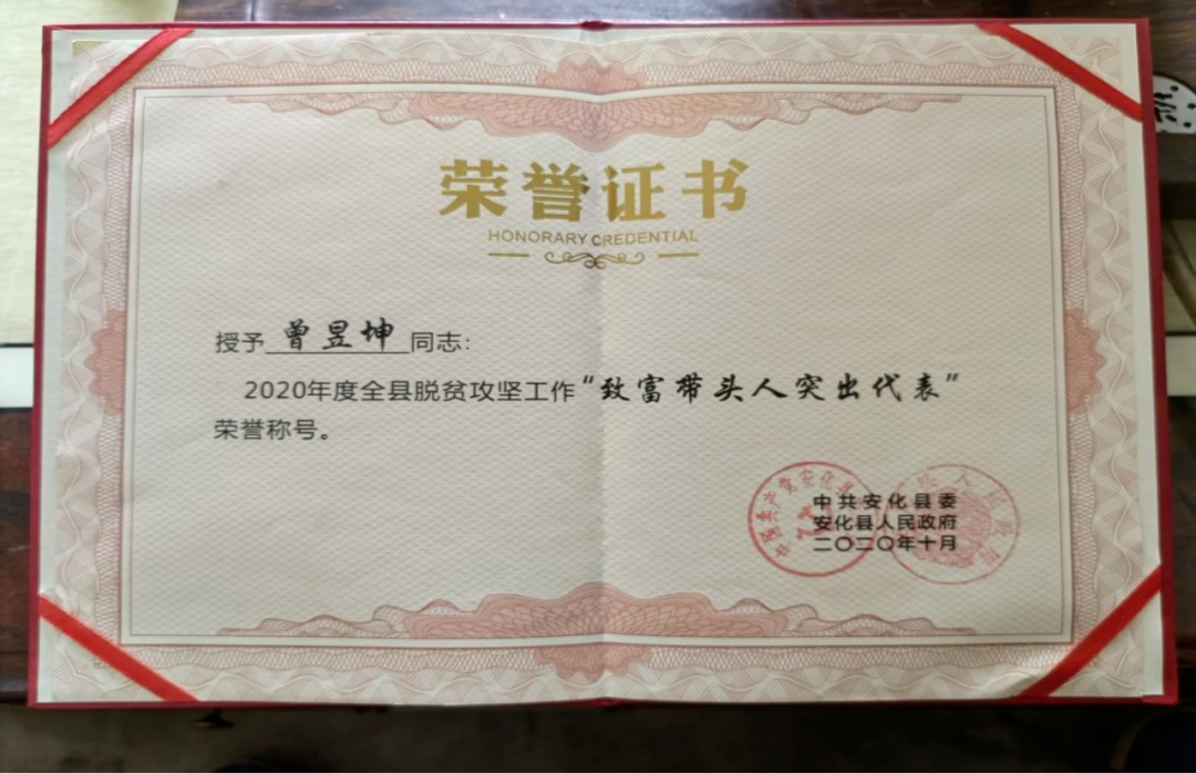 ●全县脱贫攻坚工作“致富带头人突出代表”(2020年)