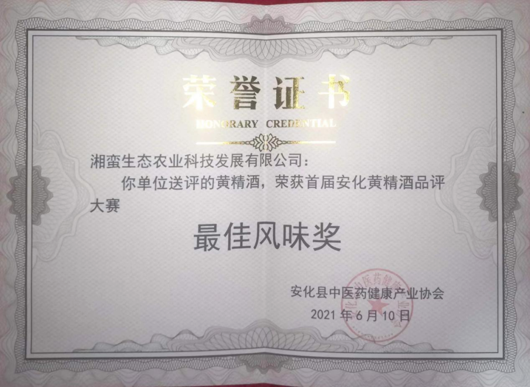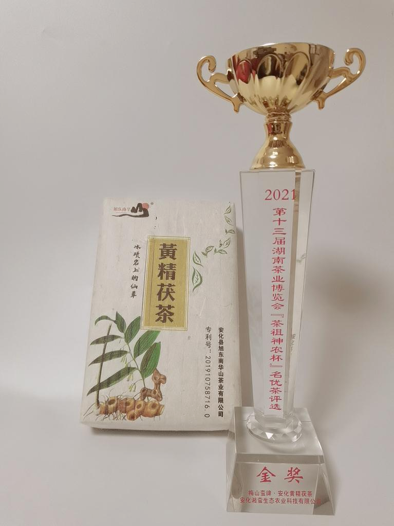 公司研发的安化黄精与安化黑茶拼配产品——“黄精茯茶”获得了国家发明专利,专利产品在2020年被评为“中国中医药与健康产业博览会百姓喜爱中医药健康产品”,在2021年第十三届湖南茶业博览会“茶祖神农杯”名优茶评选中荣获金奖。