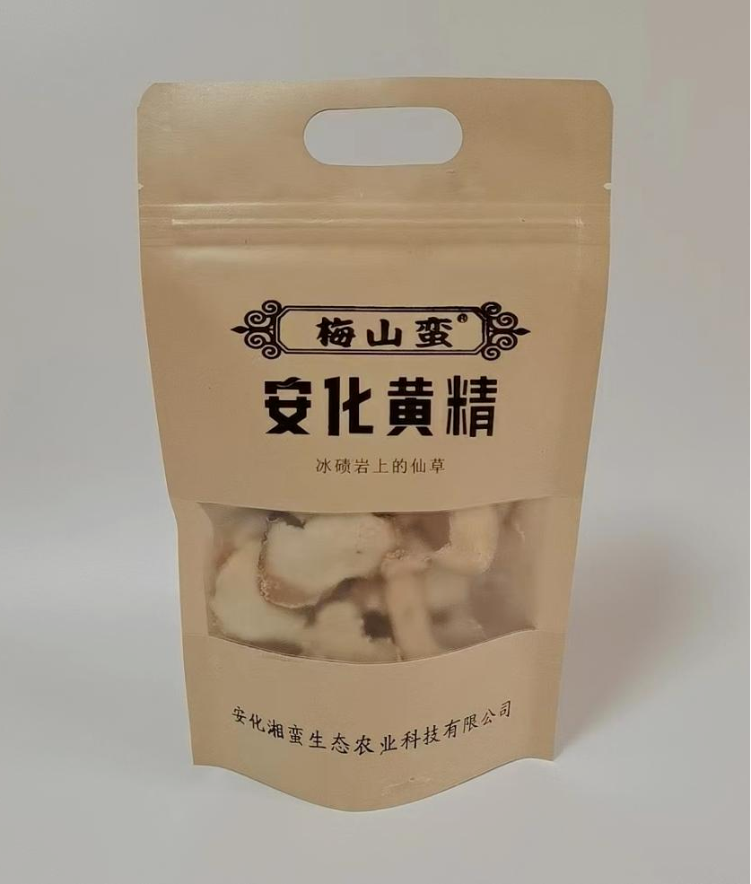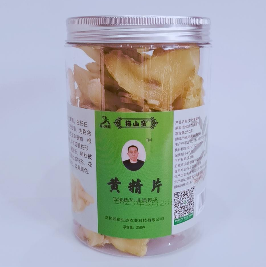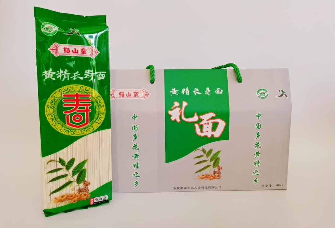 湘蛮生态农业公司是冷市镇黄精产业“一线两片多点”整体布局的领军企业,聚力打造“梅山蛮”品牌,主导产品有黄精片、黄精茶、黄精茯茶、黄精酒、黄精面条和黄精膏等。采取“企业+合作社+基地”的模式,打通产业的上中下游,实现产业的闭环发展。2023年实现加工黄精400多吨,销售收入3000多万元,利润总额400多万元。