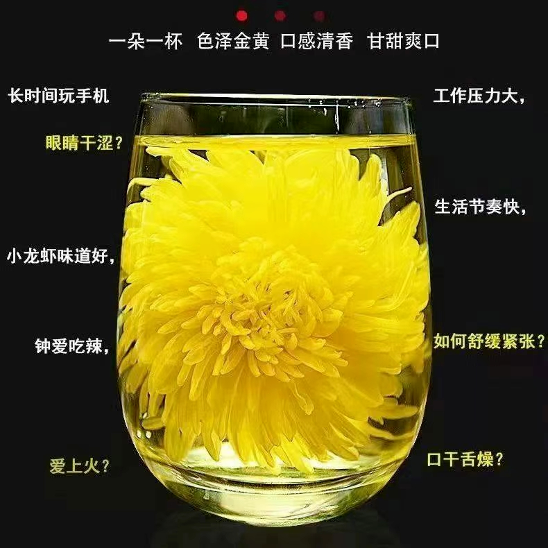 金丝皇菊味甘,性微寒,具有疏风散热、清热解毒、明目等功效。日常可以用金丝皇菊加枸杞泡水饮用,可以起到明目、预防干眼症的作用。