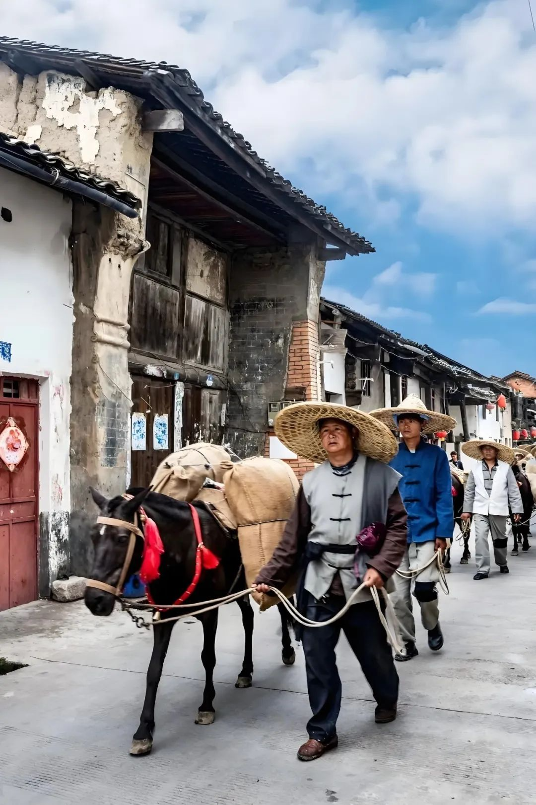 次日,天刚露出鱼肚白,一阵悠扬的钟声在黄沙坪茶市上空穿过。为马帮送行的人们正向关帝庙聚集,张晋扯来张福吩咐他一路要关照好少爷,并告诫张云湘:“在家千日好,出门一日难,此行山路崎岖,任重道远,遇事要冷静……”吉时已到,狮舞龙腾,炮响乐鸣,响彻云霄,马帮列队整装出发。
