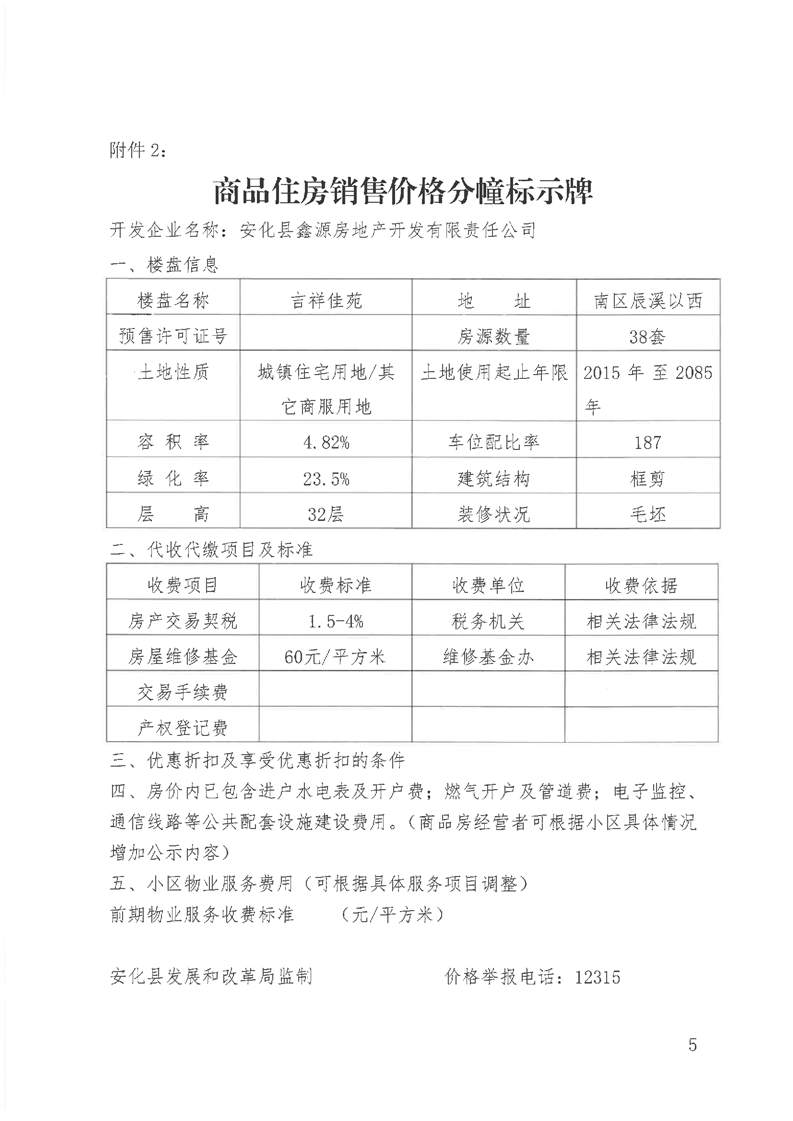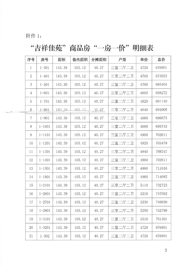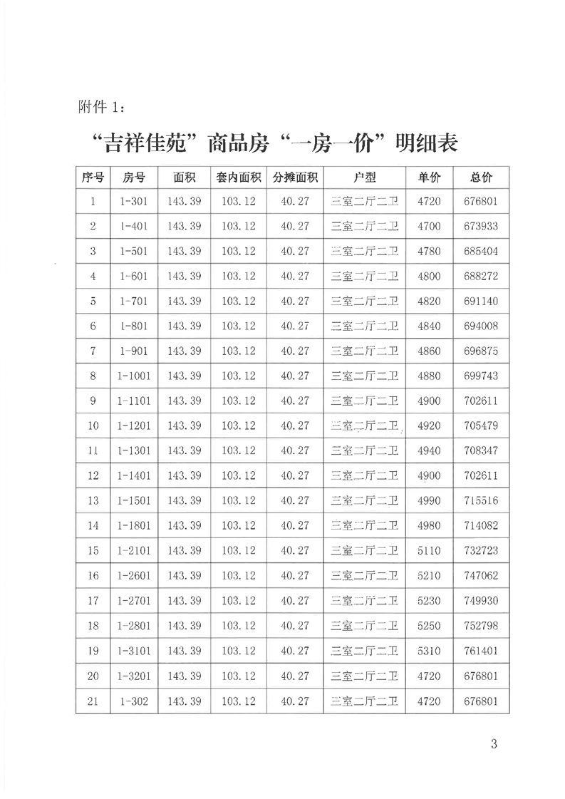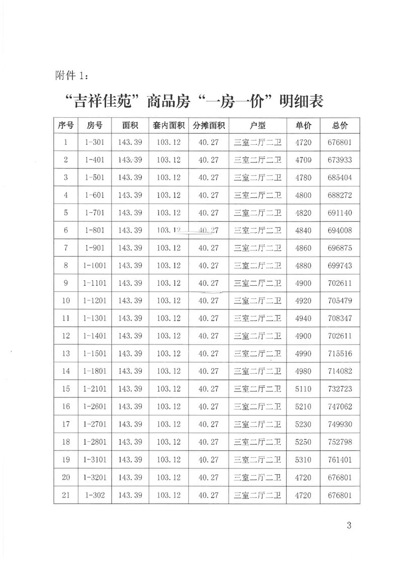 关于调整“吉祥佳苑”商品住房销售价格的备案证明
