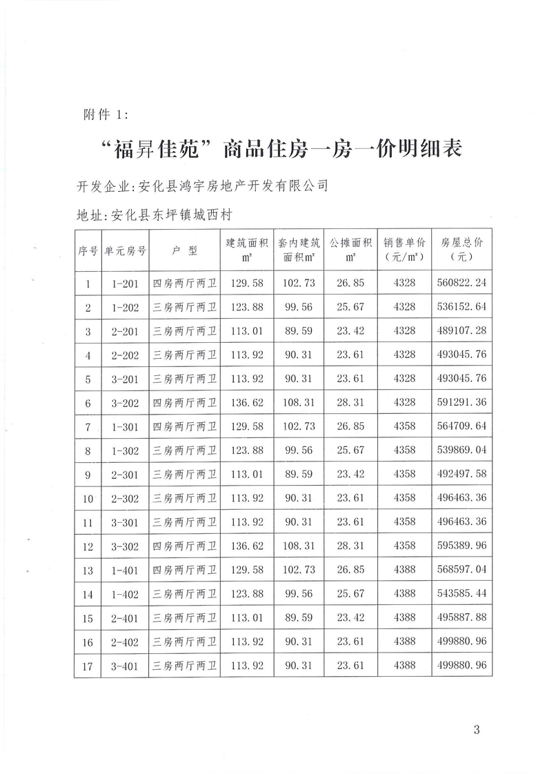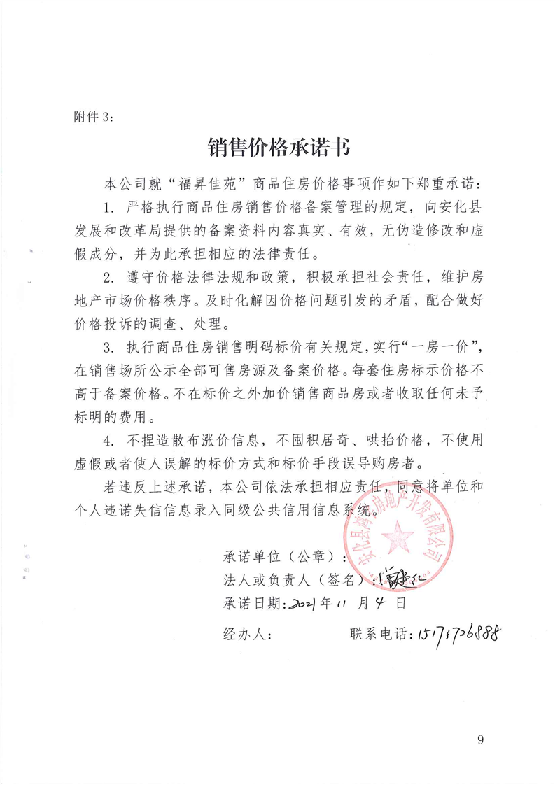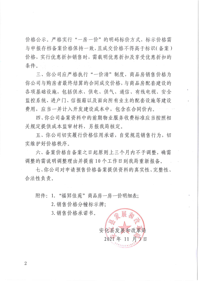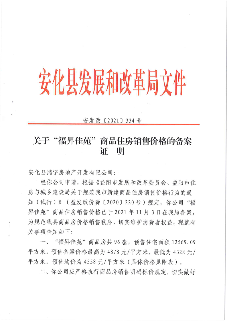 关于“福昇佳苑”商品住房销售价格的备案证明
