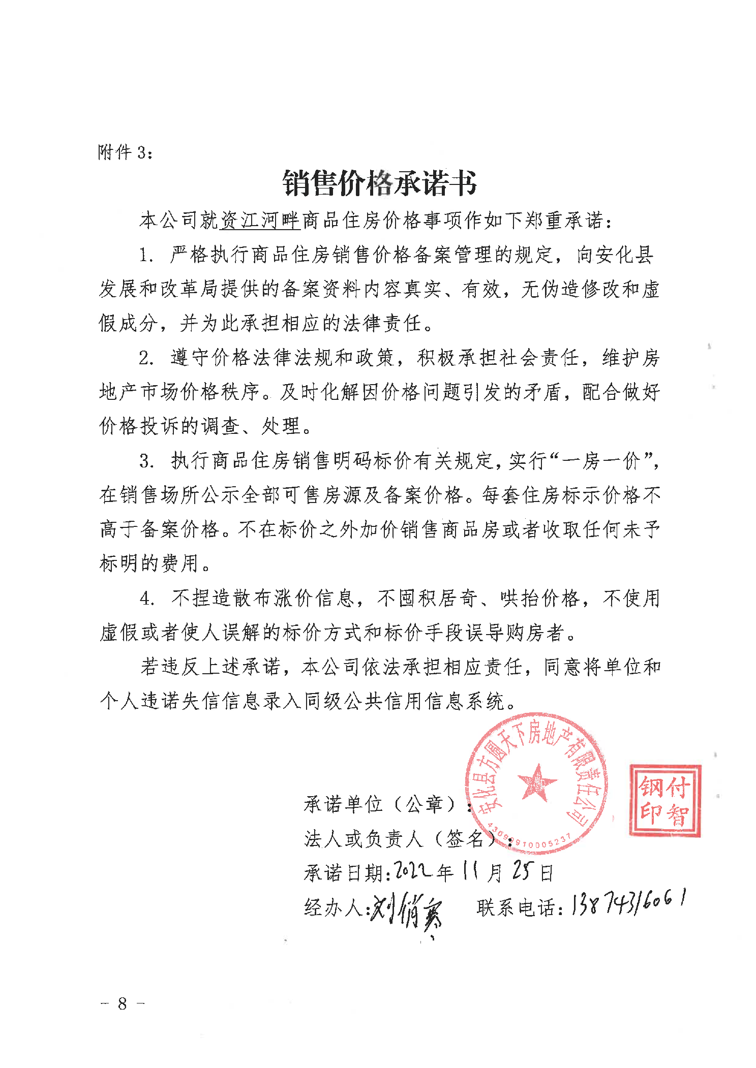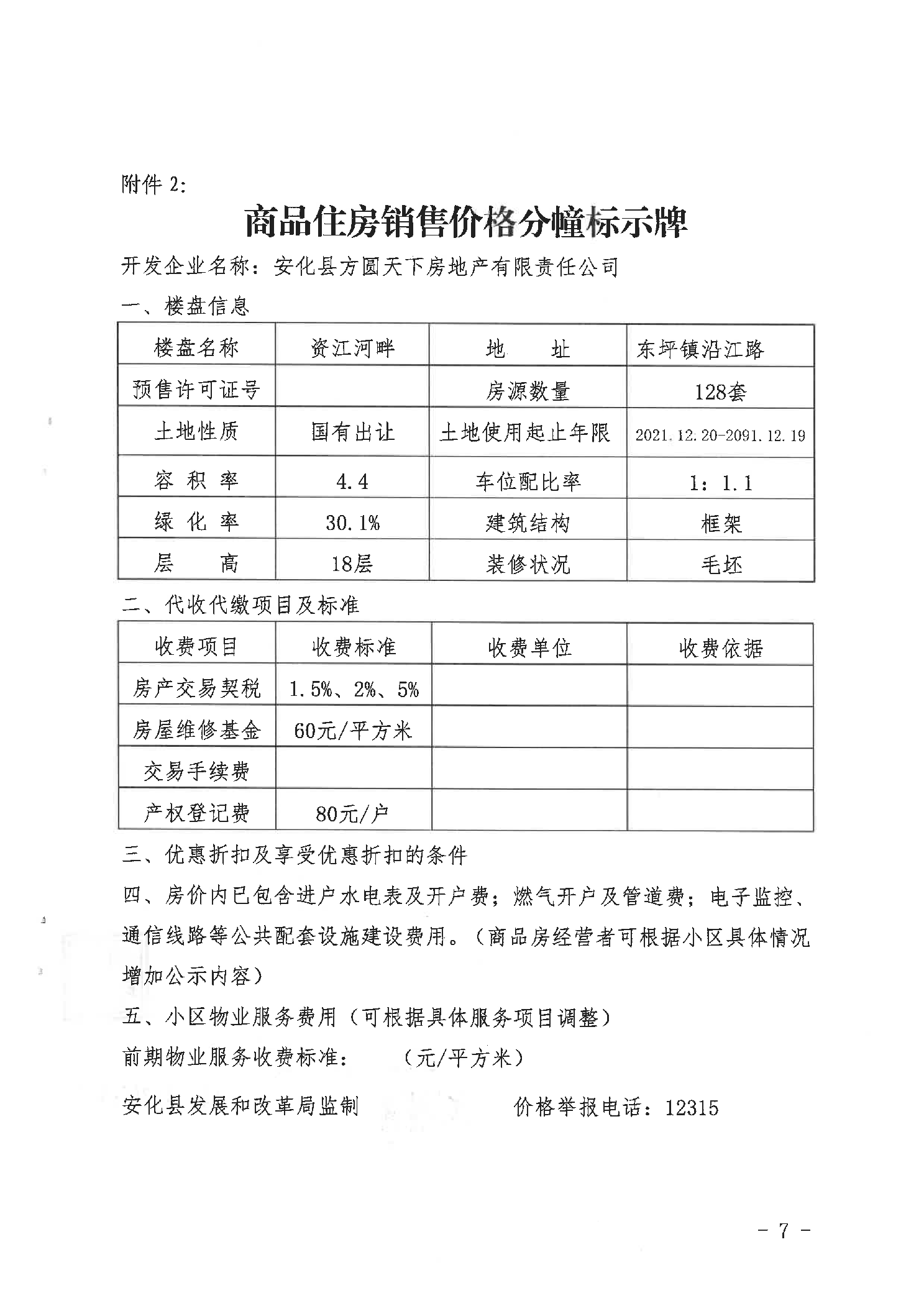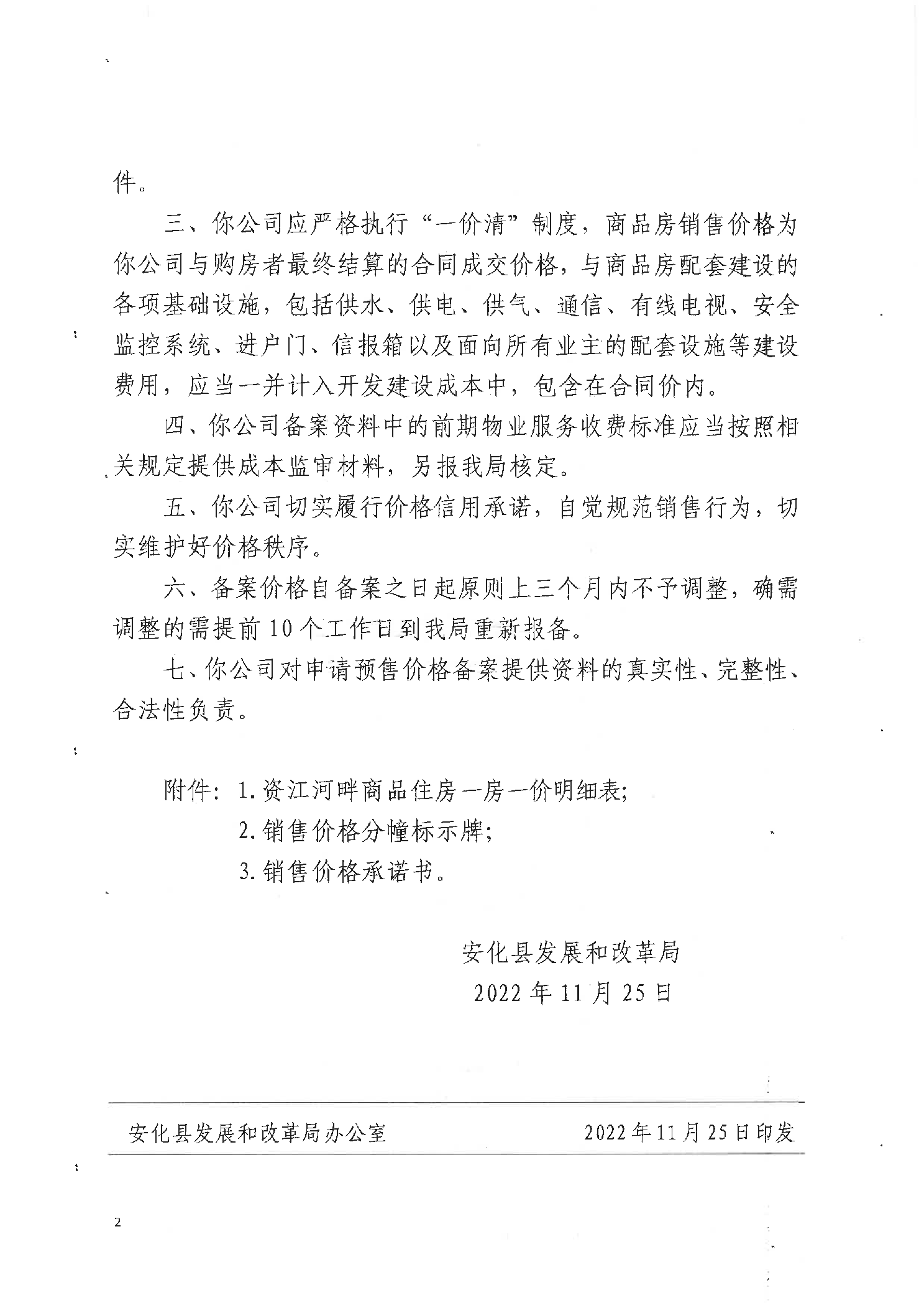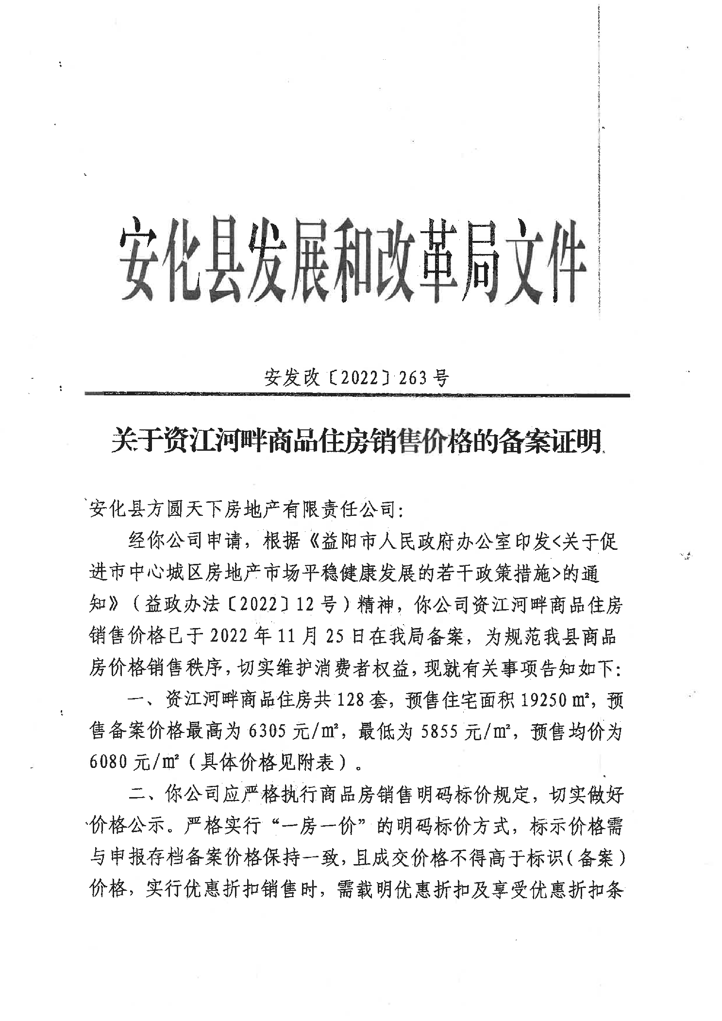 关于资江河畔商品住房销售价格的备案证明