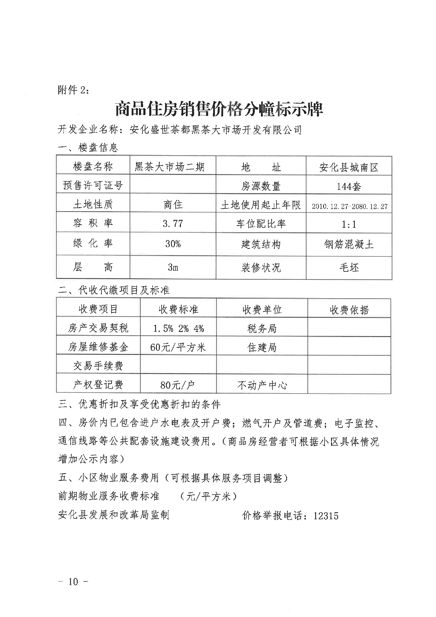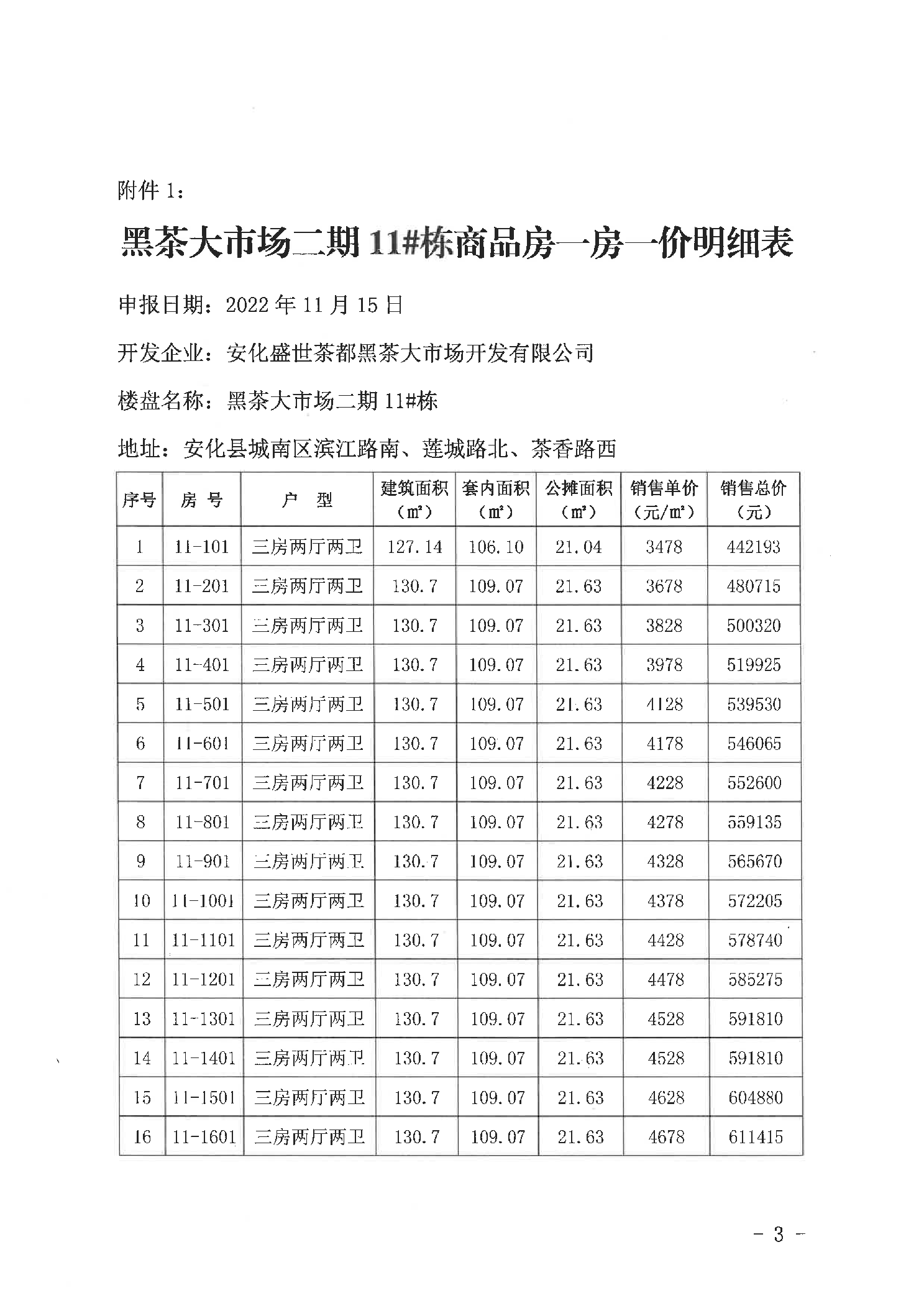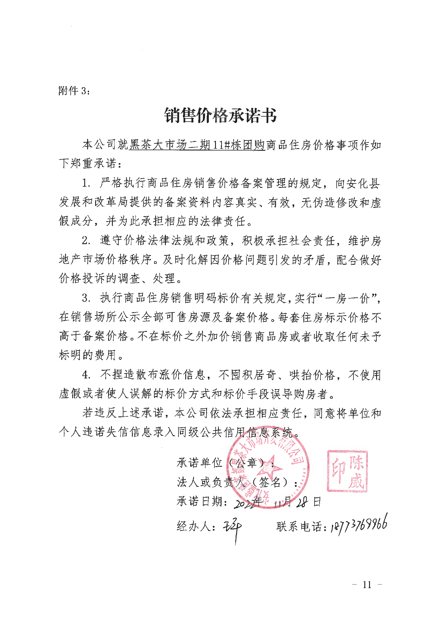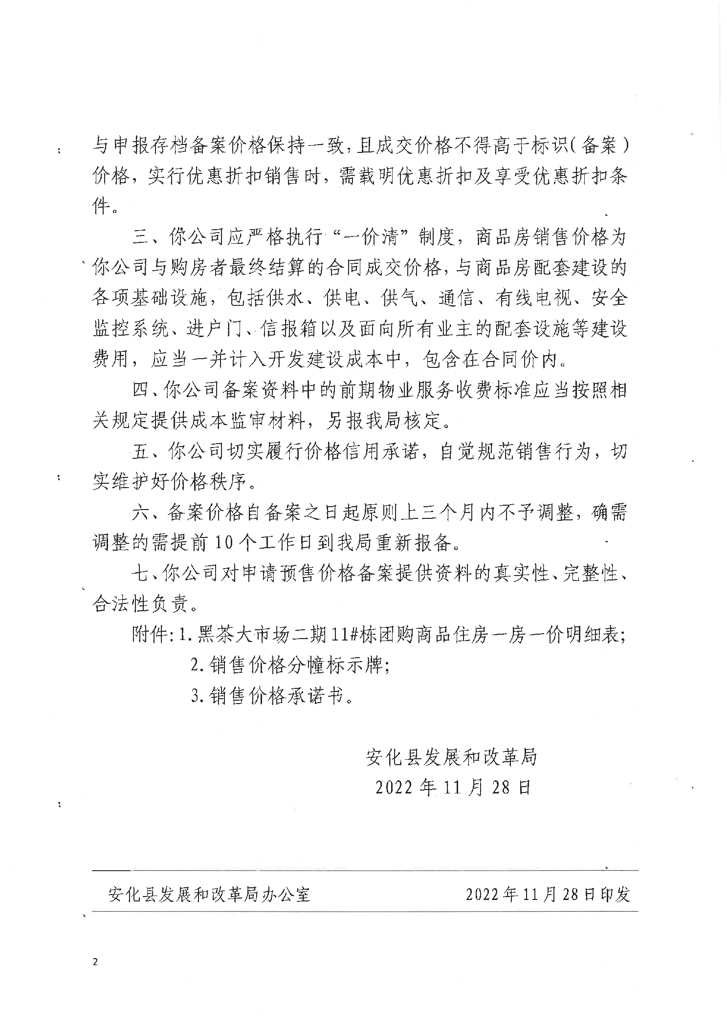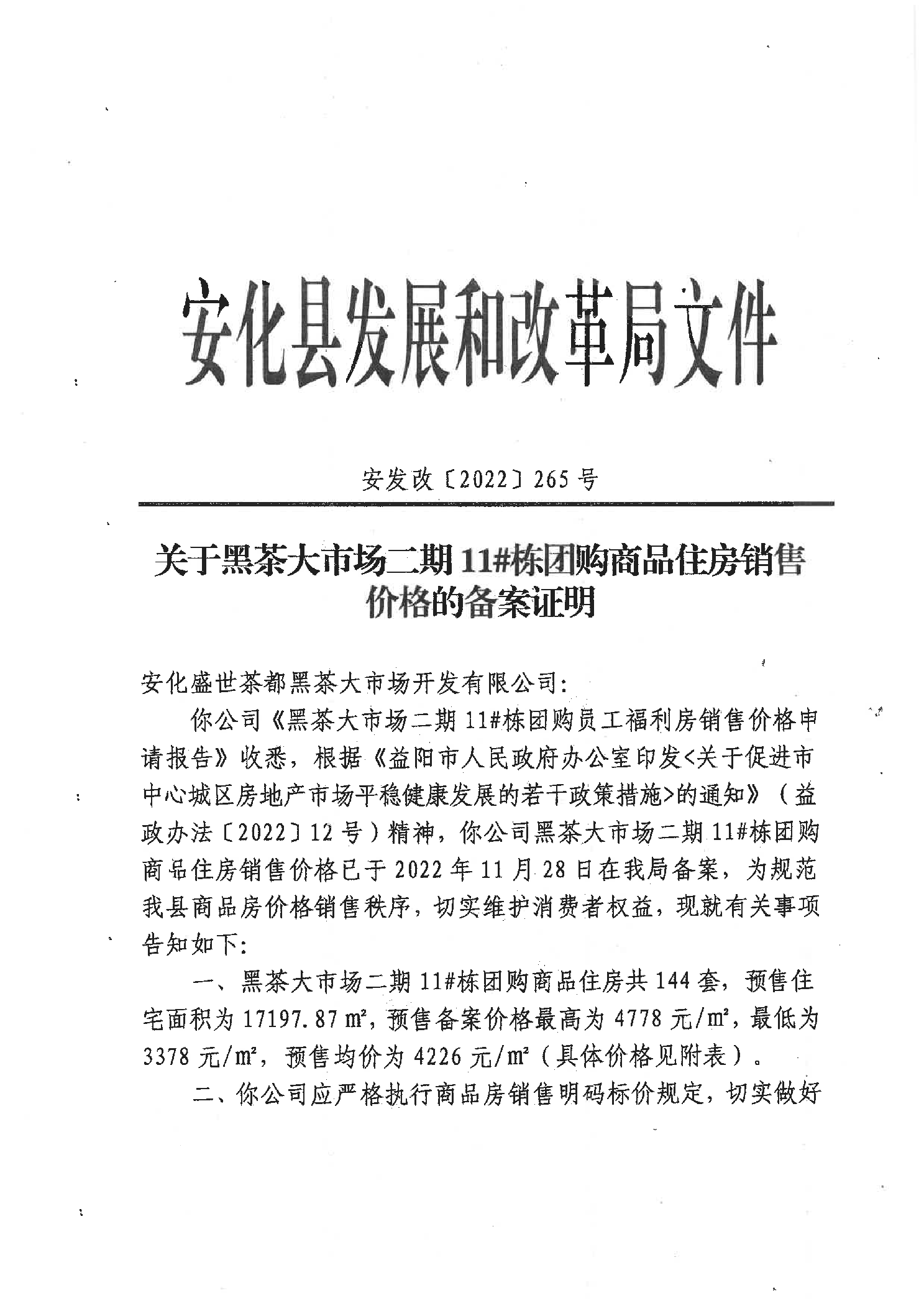 关于黑茶大市场二期11#栋团购商品住房销售价格的备案证明