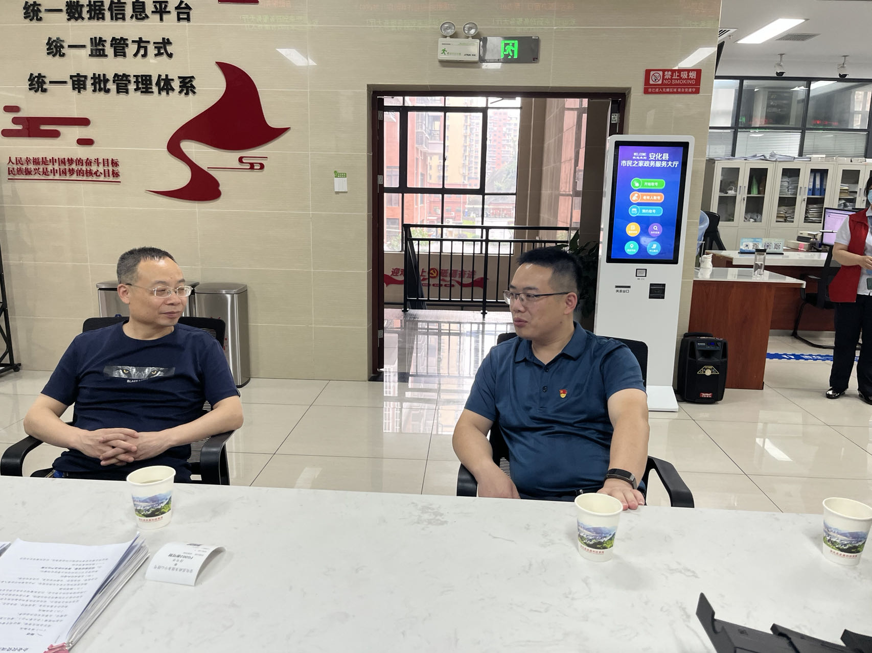 谭军同志先以普通办事企业身份了解项目立项办理流程,并通过“帮代办”、“陪伴走流程”等模式,体验了企业投资项目备案事项。随后,谭军同志又邀请了县住建局工作人员,调研了工改系统运行情况,询问了园区赋权事项是否通过平台办理,办理结果能否网上公示,同时对现阶段工改工作存在的 “堵点”和“难点”提出了切实可行的工作措施和建议。