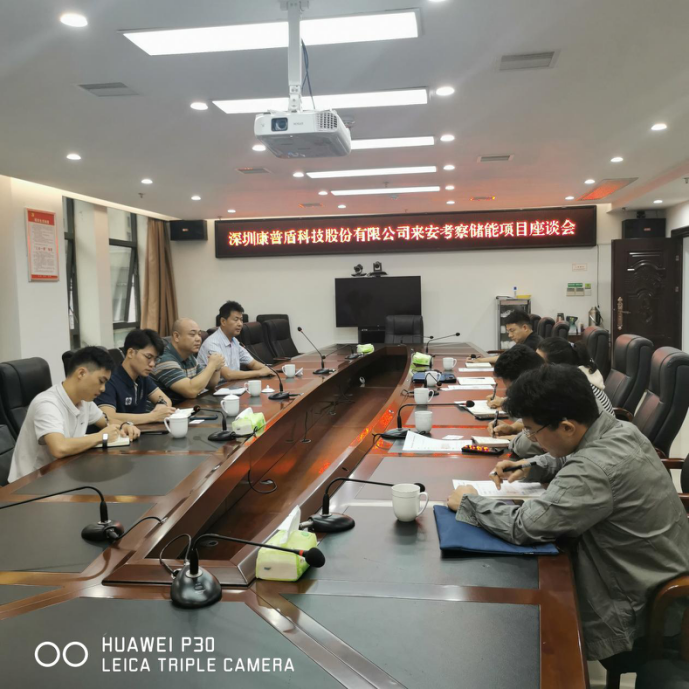 9月21日,深圳康普盾科技股份有限公司下属新能源公司总经理曾远省一行4人到安化考察化学储能项目。公司与发改、商务、交通及电网安化分公司等单位人员进行了座谈,会上就项目选址、变电容量接入、招商政策等问题进行了充分沟通了解,会后对项目地点进行了考察。经座谈沟通及实地选址察看后,该公司表示有意愿来安化投资建设,新建1 0 0 M W / 2 0 0 M W h 储能电站,投资5亿元左右。