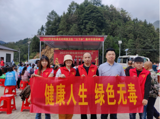 9月27日,安化县文化科技卫生“三下乡”集中示范活动在田庄乡永平村举办,从四面八方赶来的群众纷纷齐聚这里观看演出。县发改局充分利用这一有利时机,组织志愿者开展禁毒宣传活动。