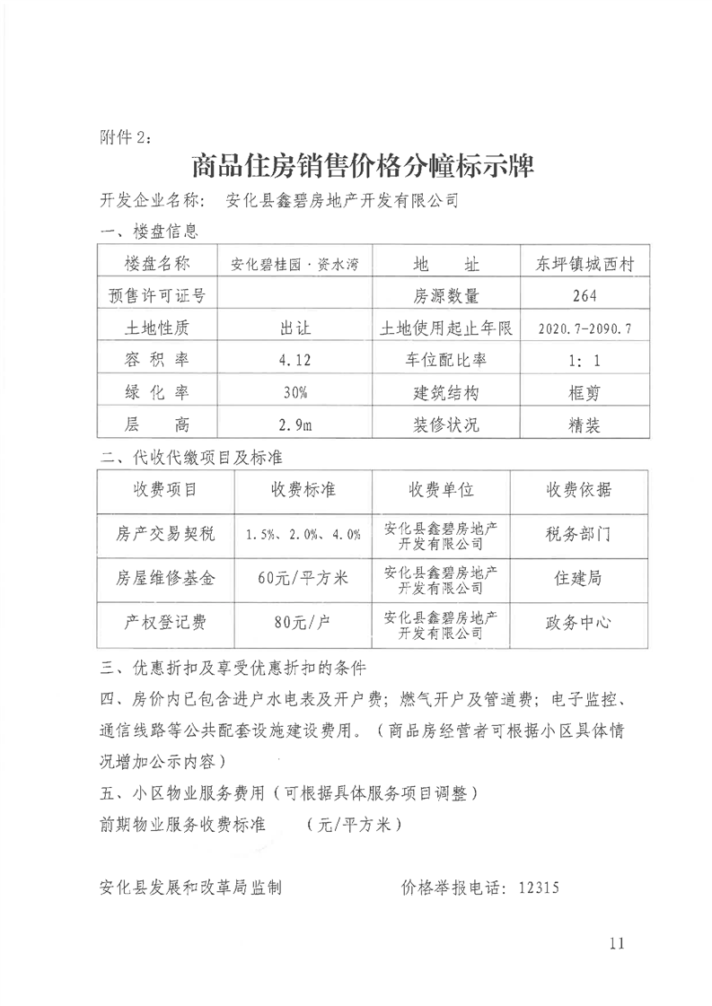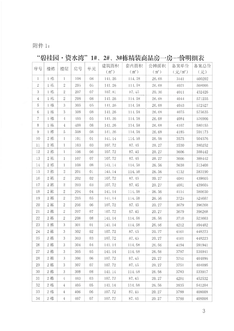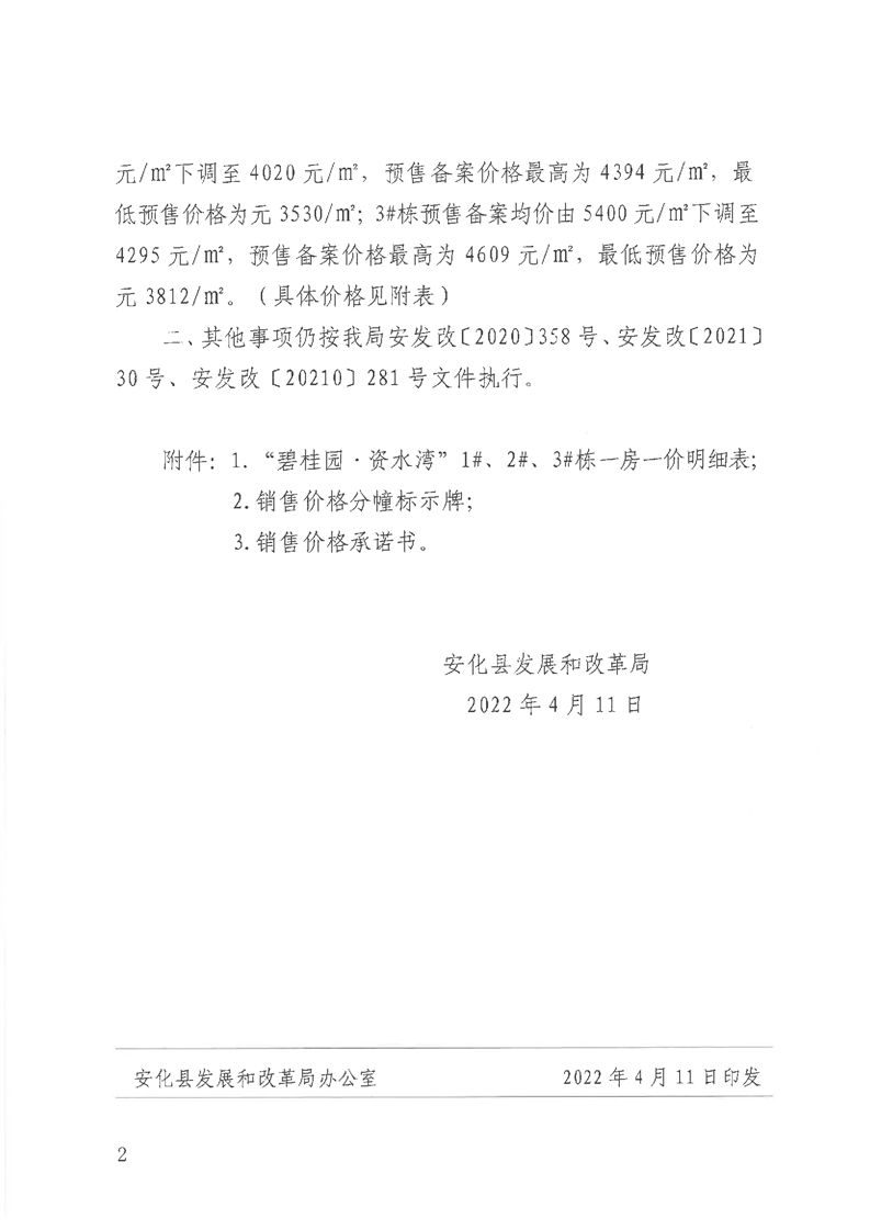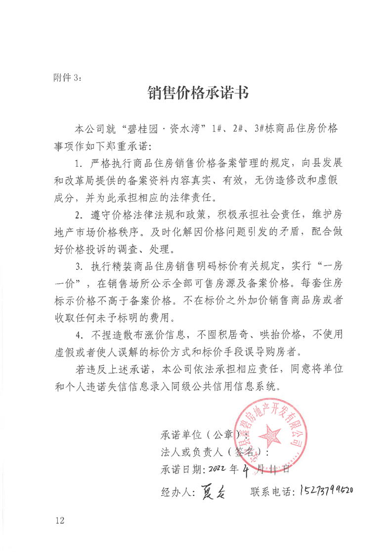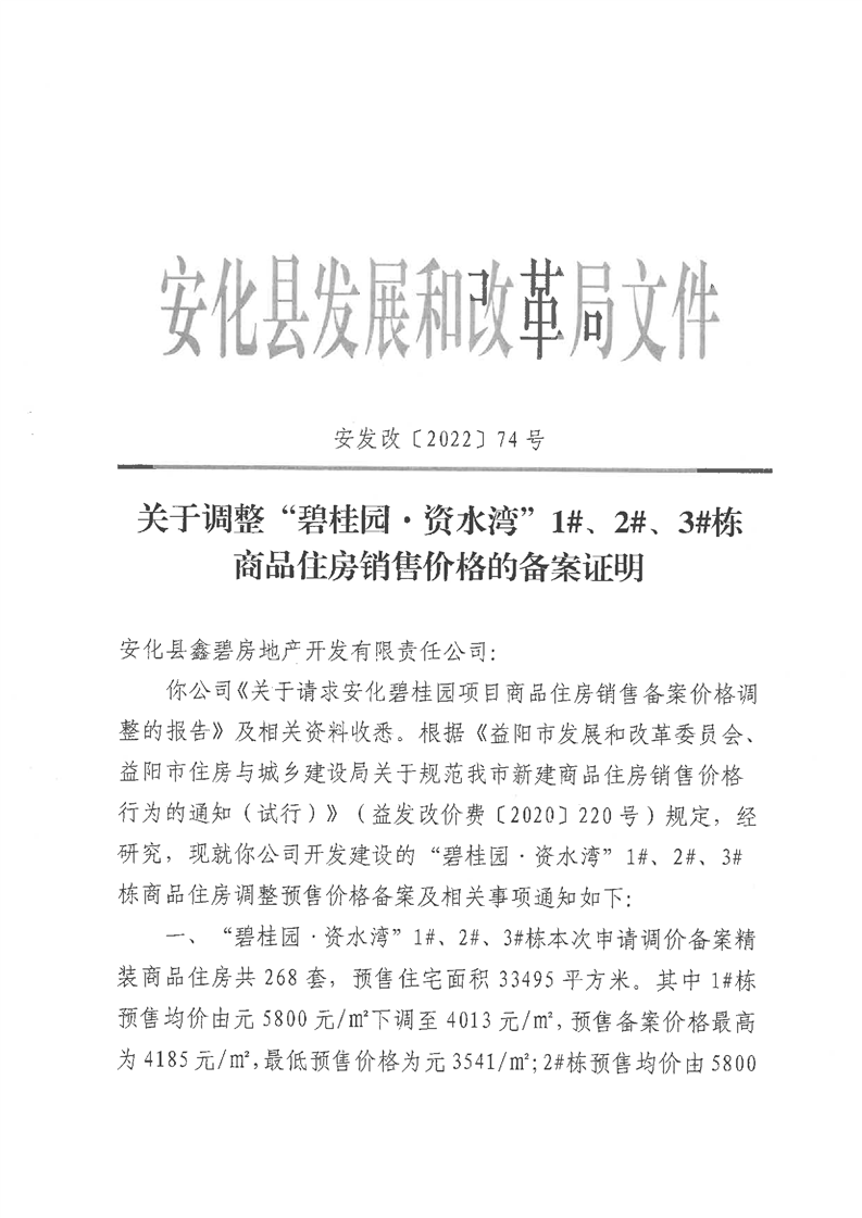 关于调整“碧桂园·资水湾”1#、2#、3#栋商品住房销售价格的备案证明