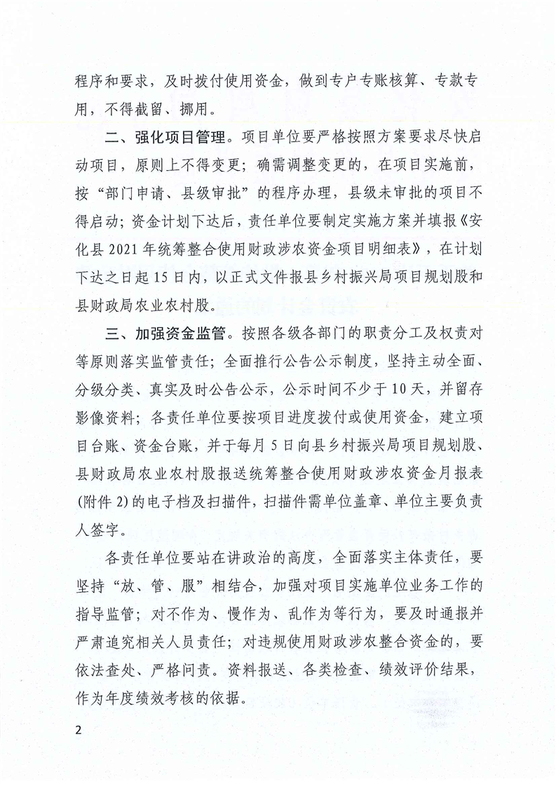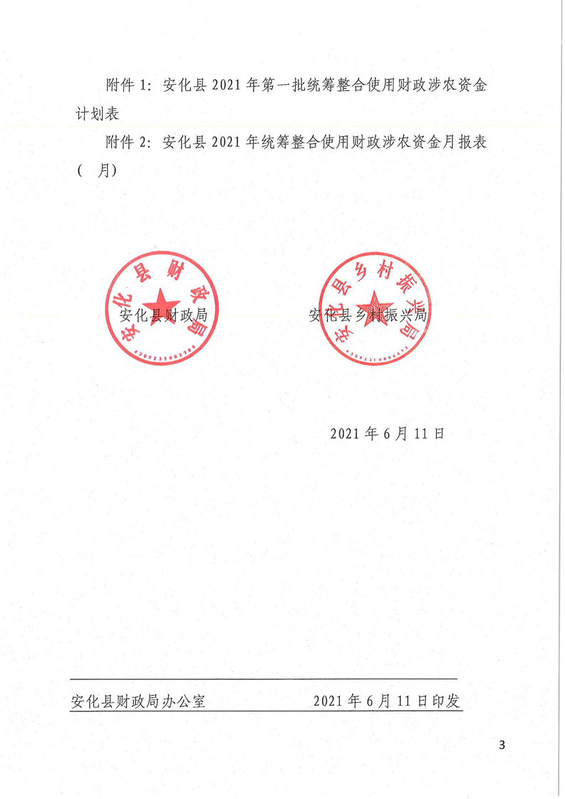 关于下达2021年第一批统筹整合使用财政涉农资金计划的通知(安财农指〔2021〕1号)