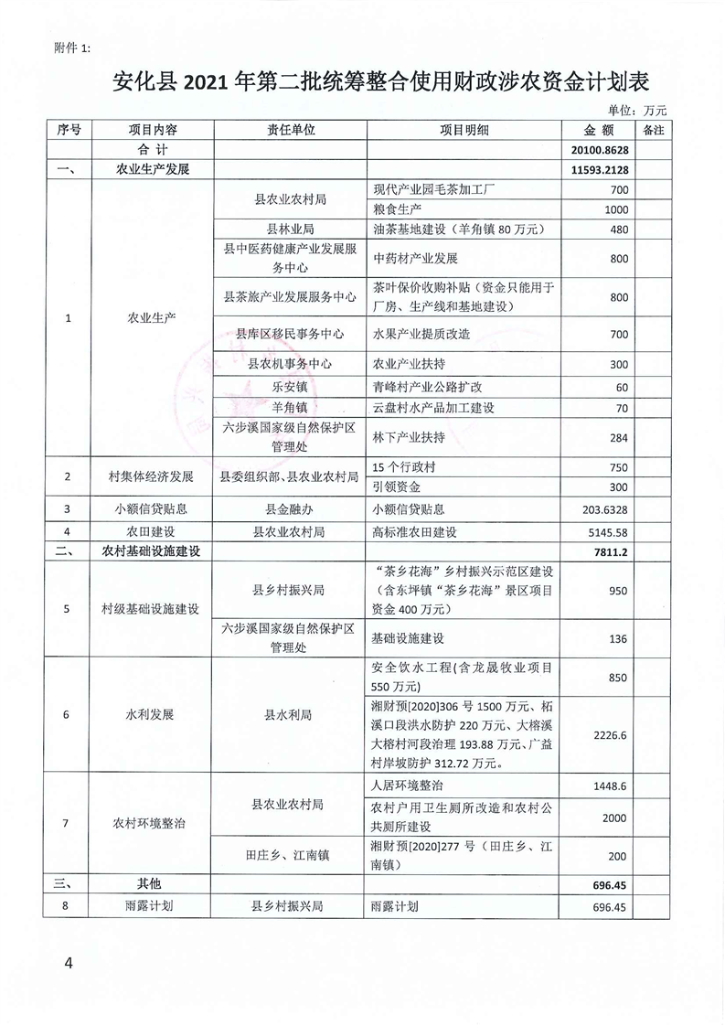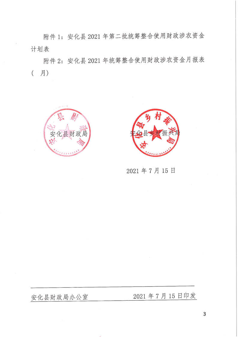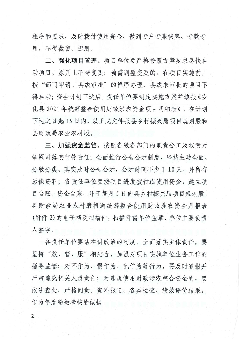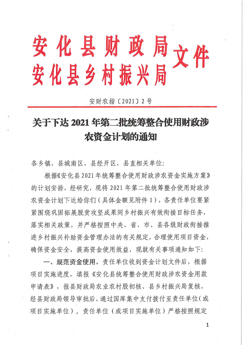 关于下达2021年第二批统筹整合使用财政涉农资金计划的通知(安财农指〔2021〕2号)