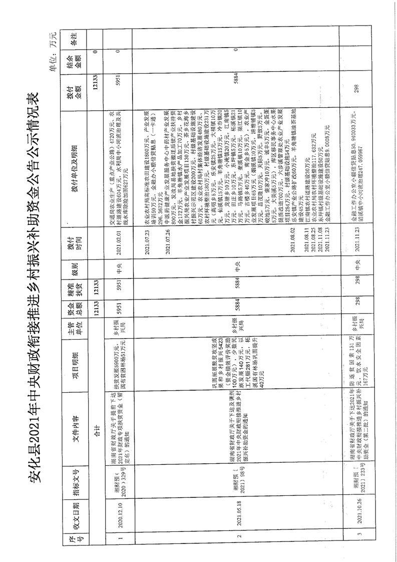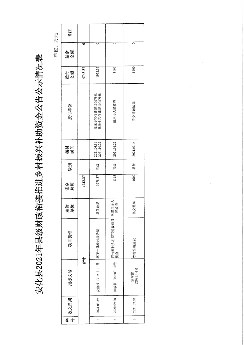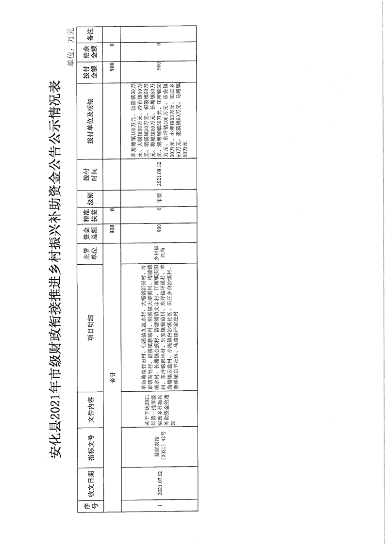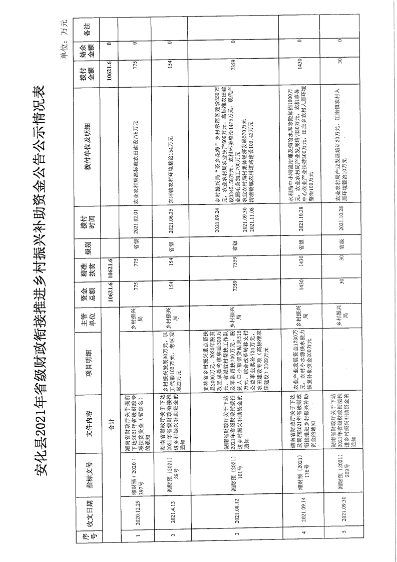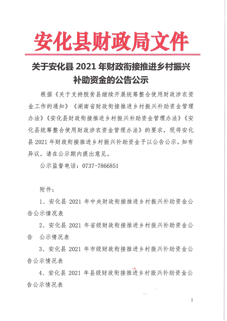 关于安化县2021年财政衔接推进乡村振兴补助资金的公告公示