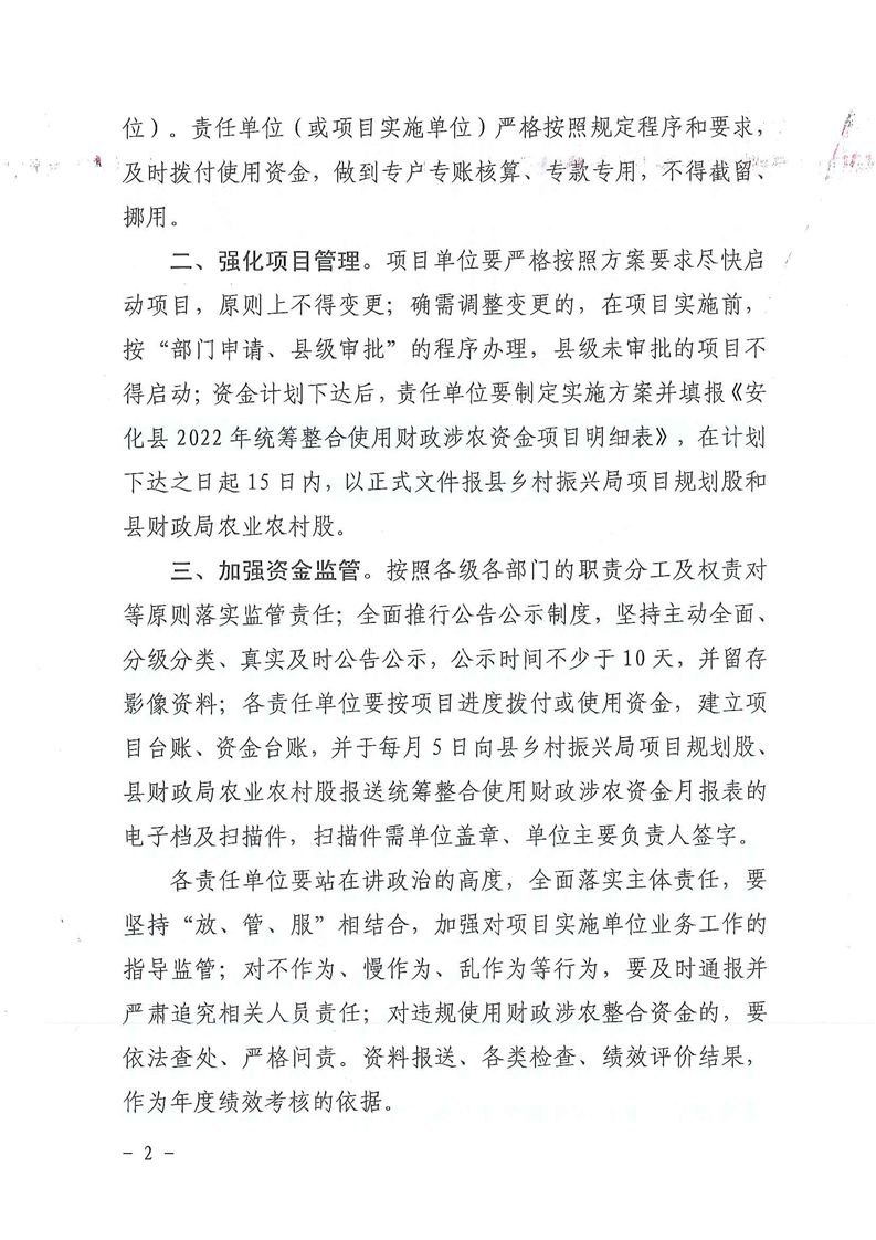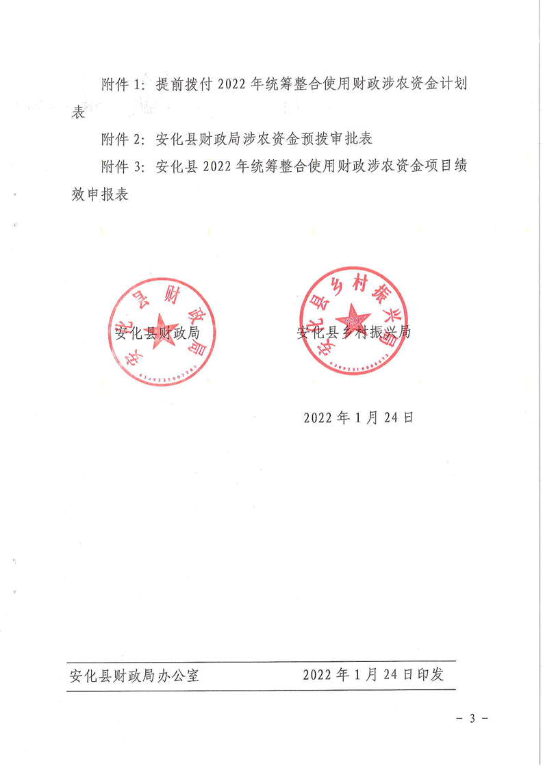 安财农指〔2022〕3号 关于提前下达2022年统筹整合使用财政涉农资金计划的通知