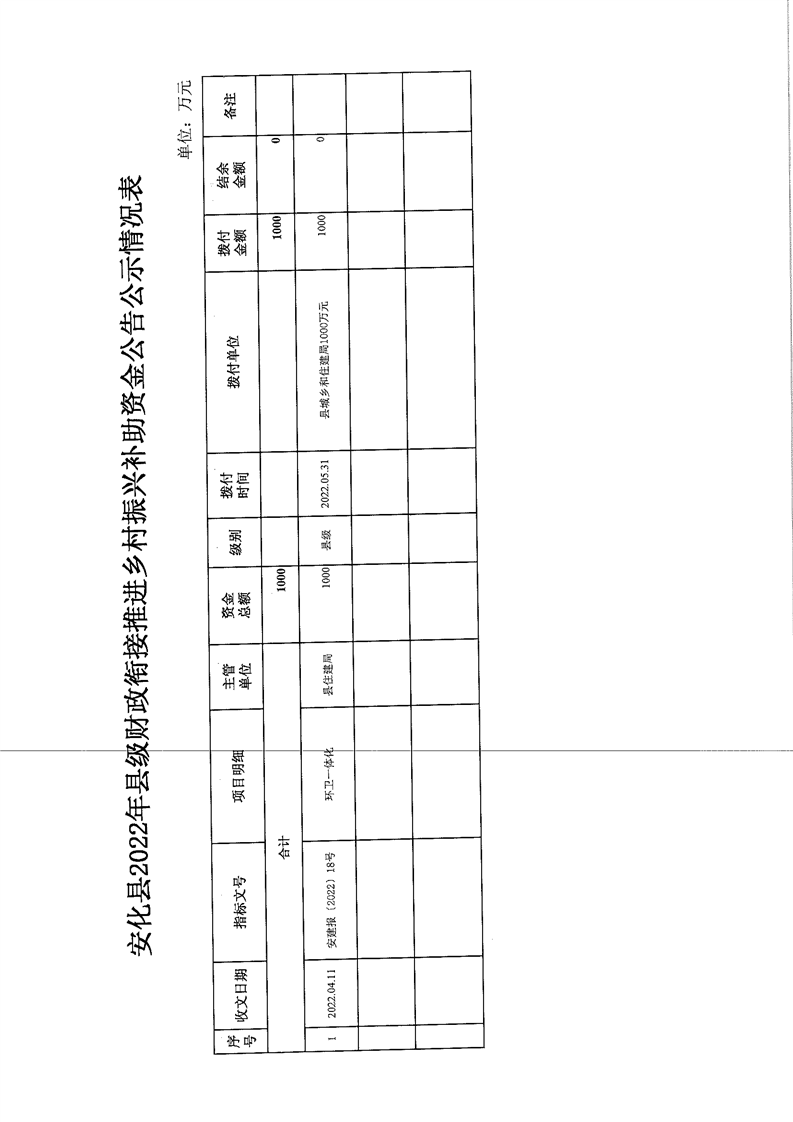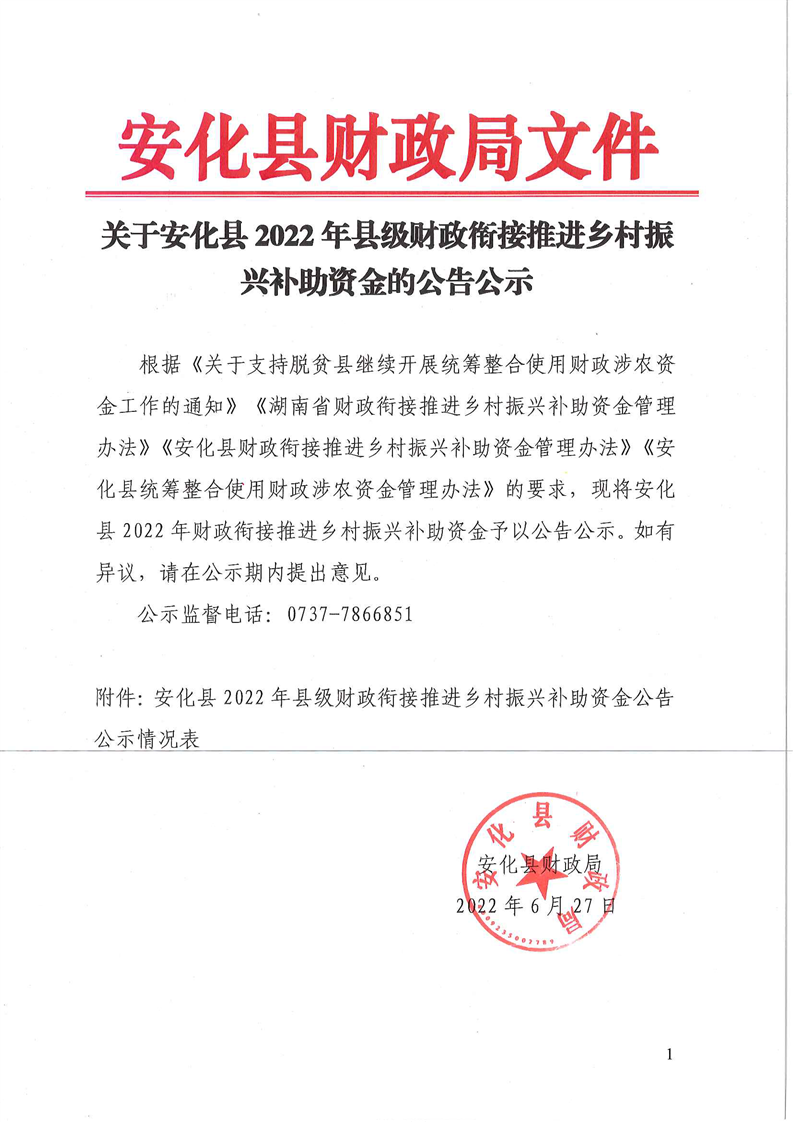 关于安化县2022年县级财政衔接推进乡村振兴补助资金的公告公示