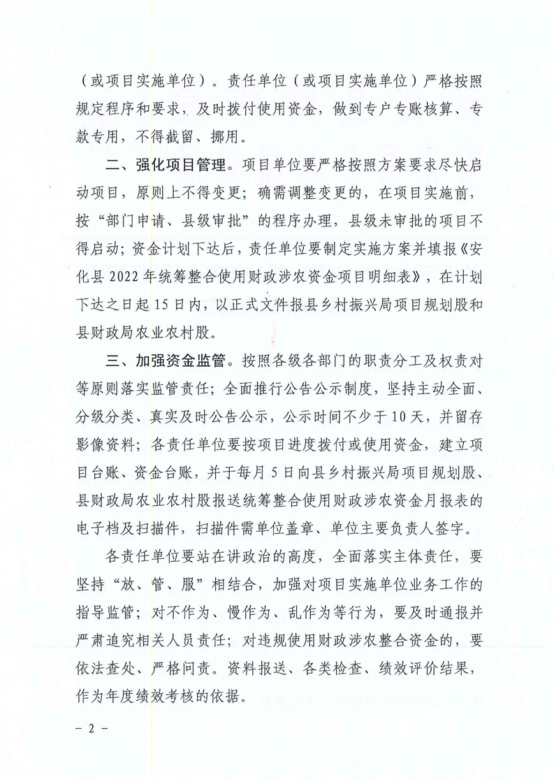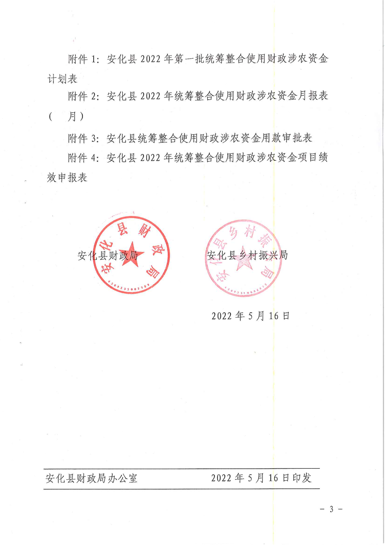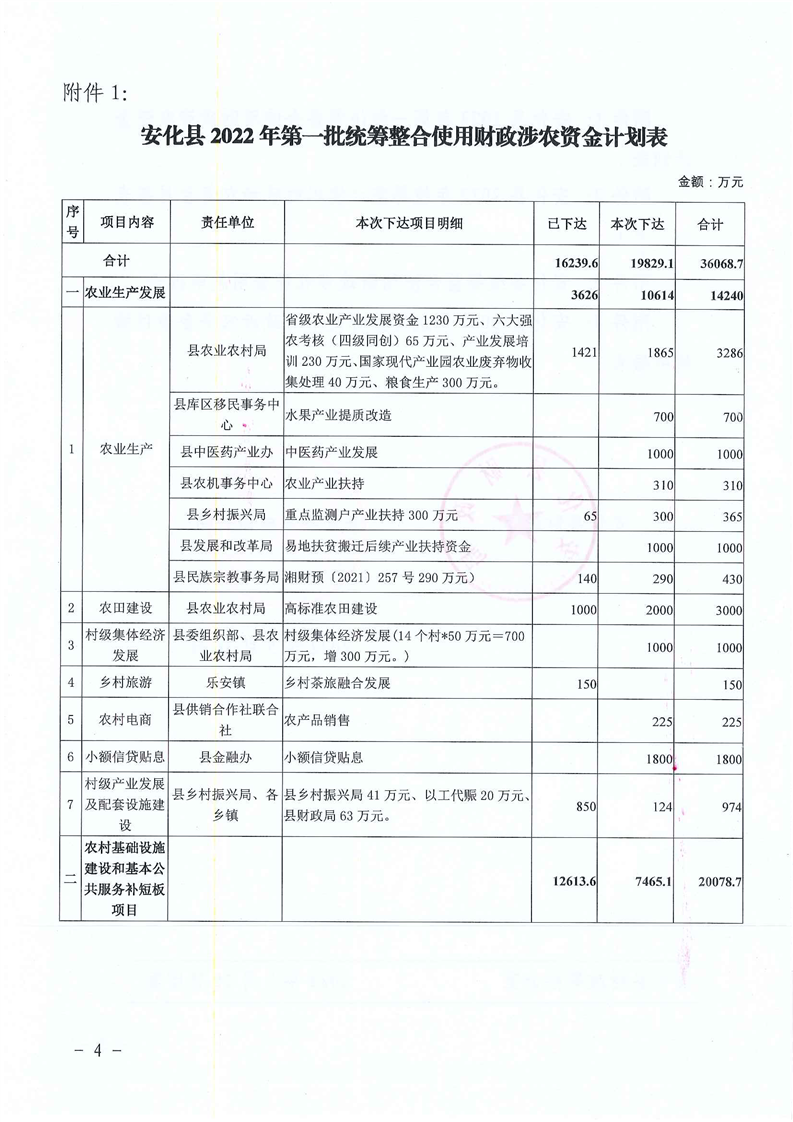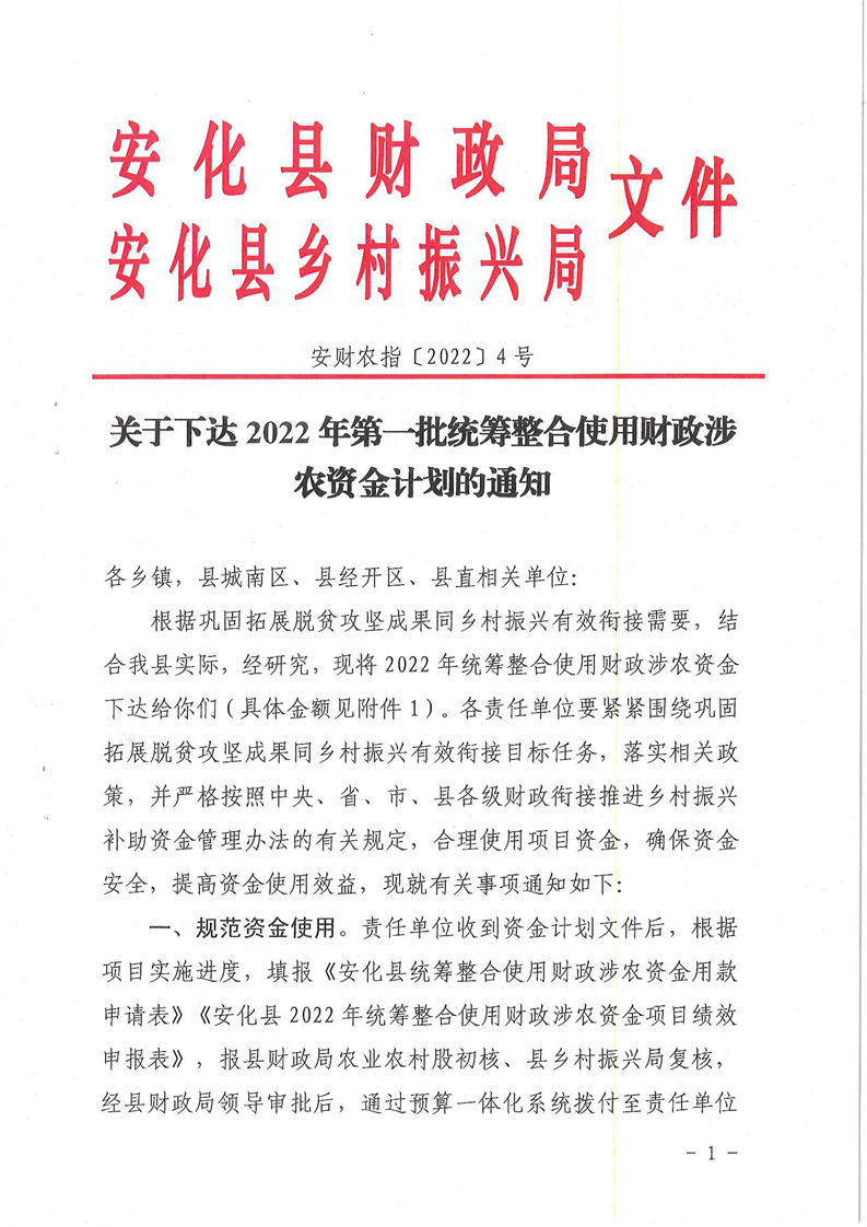 安财农指〔2022〕4号 关于下达2022年第一批统筹整合使用财政涉农资金计划的通知