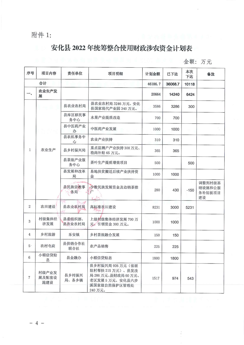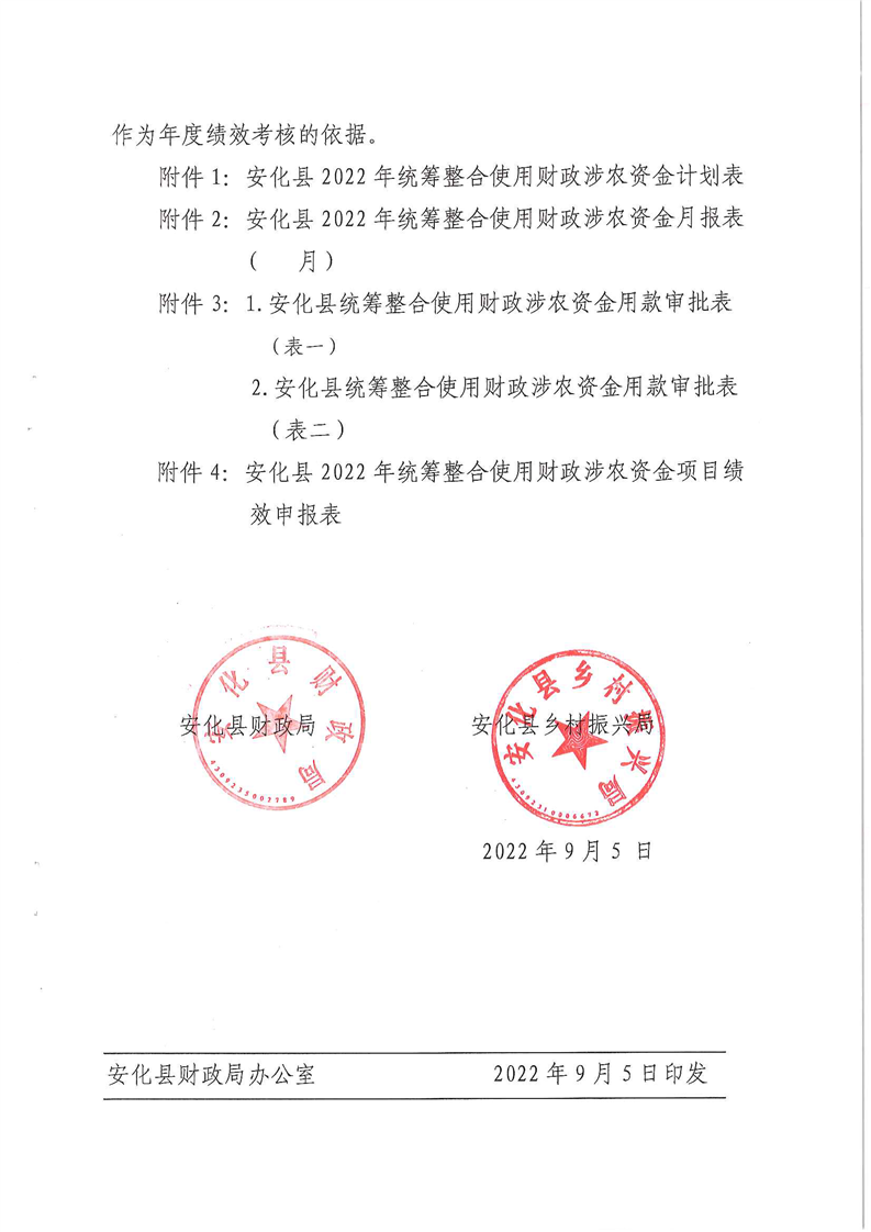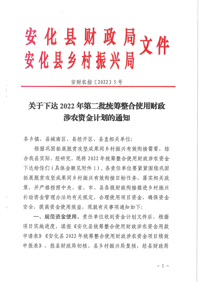 关于下达2022年第二批统筹整合使用财政涉农资金计划的通知(安财农指﹝2022﹞5号)