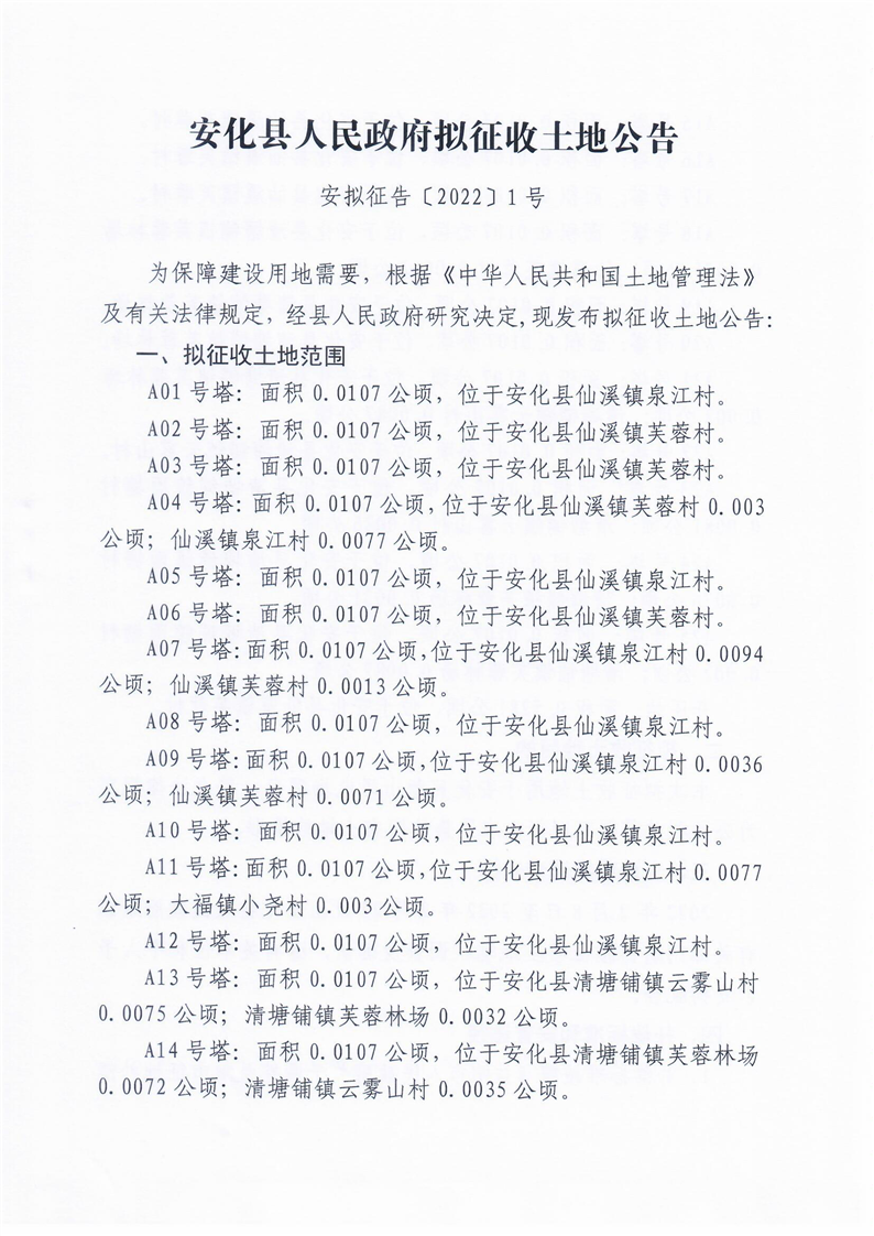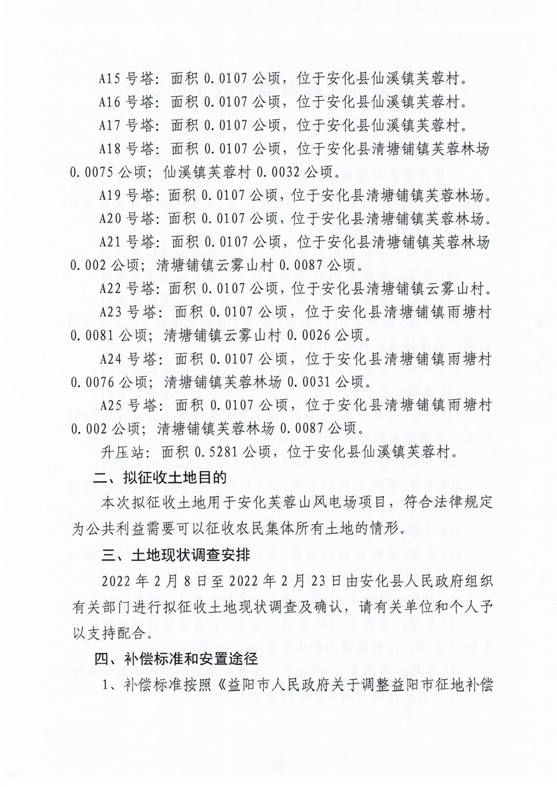 安化县芙蓉山风电场项目拟征收土地公告