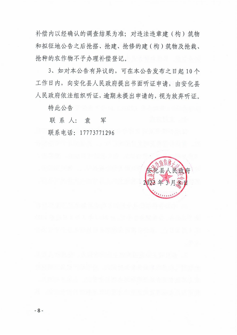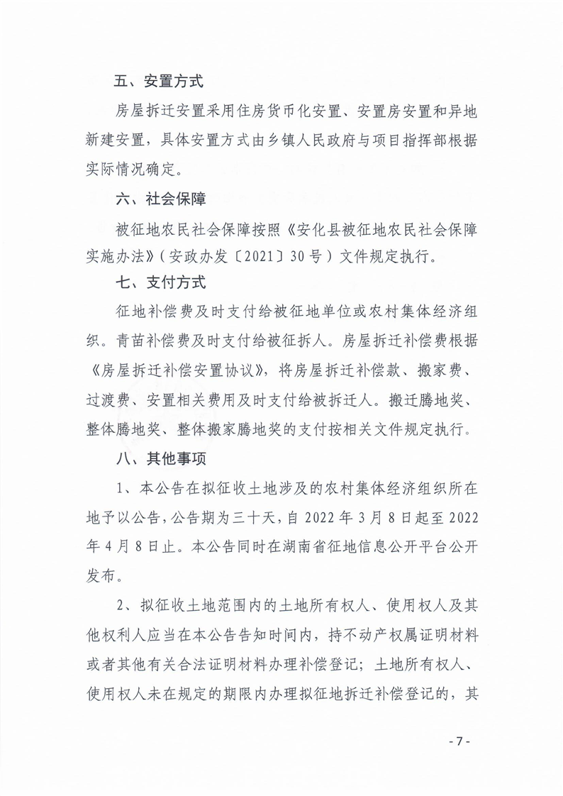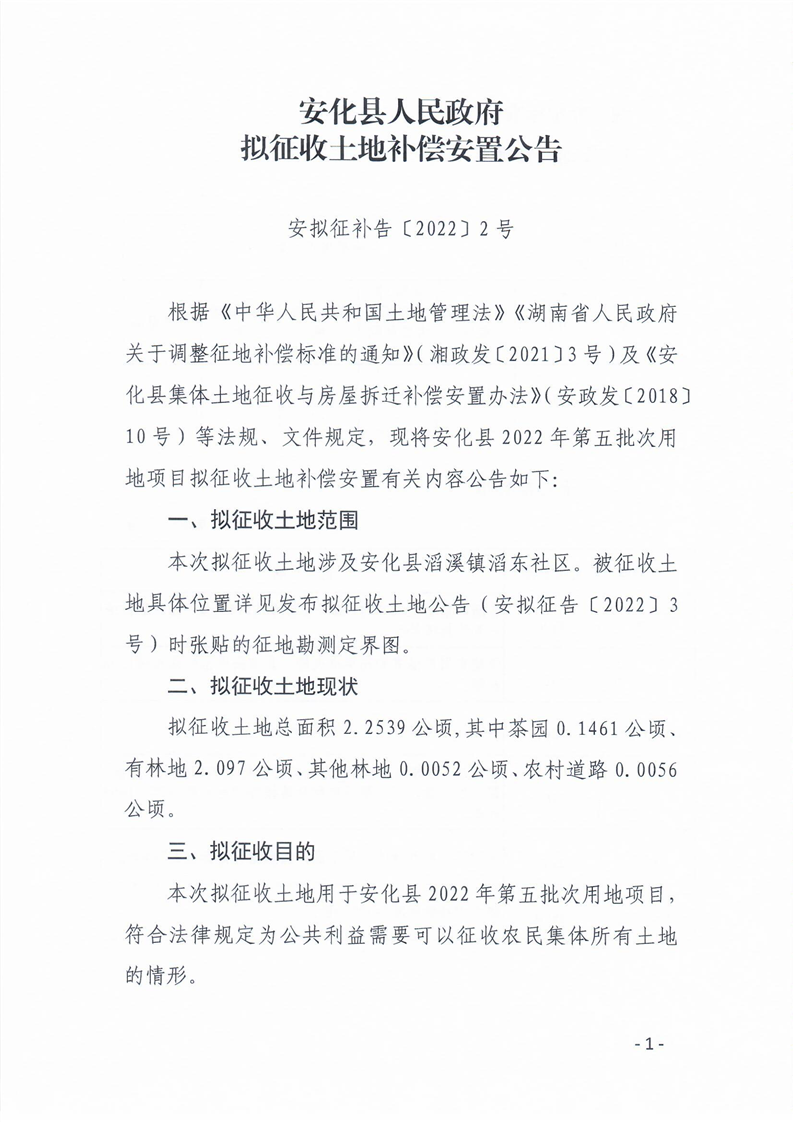 安化县2022年第五批次用地项目拟征收土地补偿安置公告
