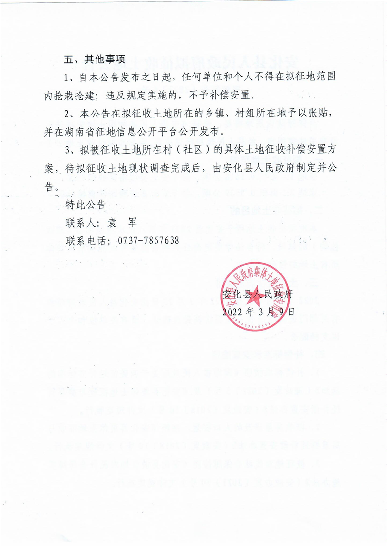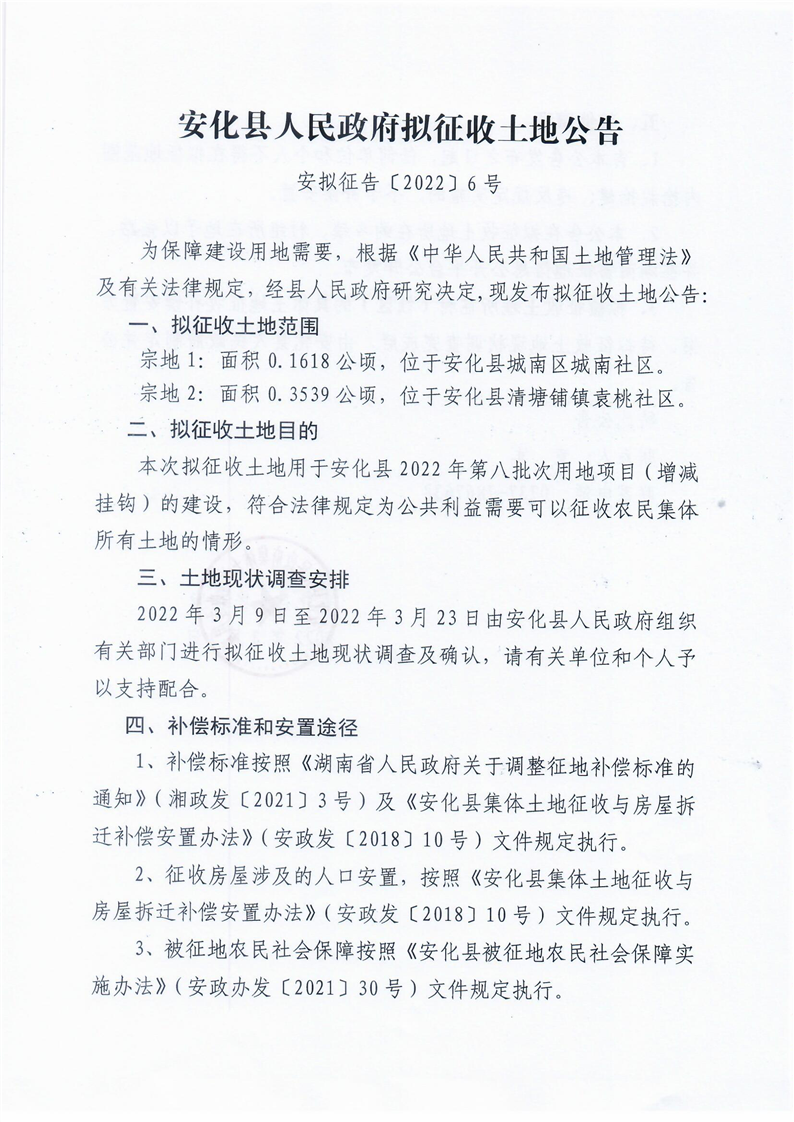 安化县2022年第八批次用地项目(增减挂钩)拟征收土地公告