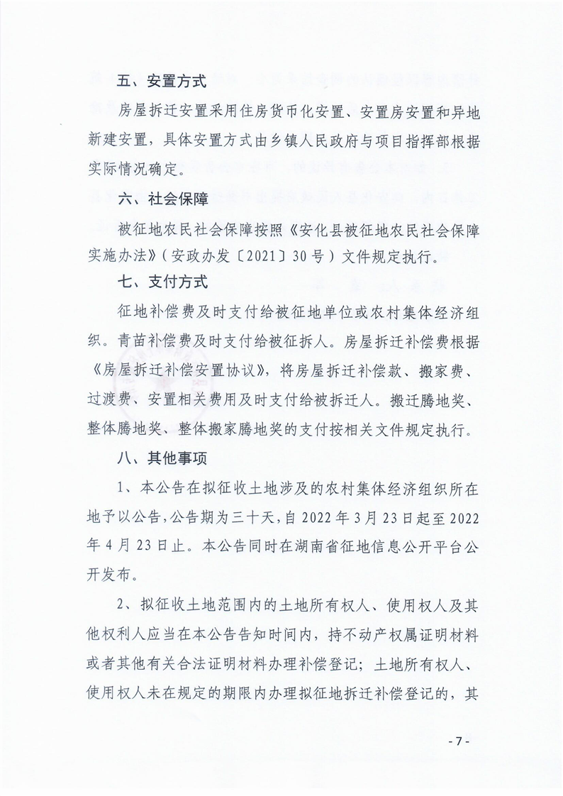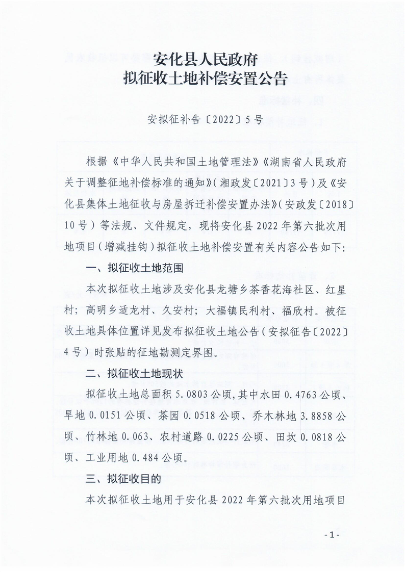 安化县2022年第六批次用地项目(增减挂钩)项目拟征收土地补偿安置公告