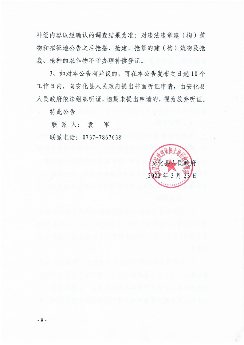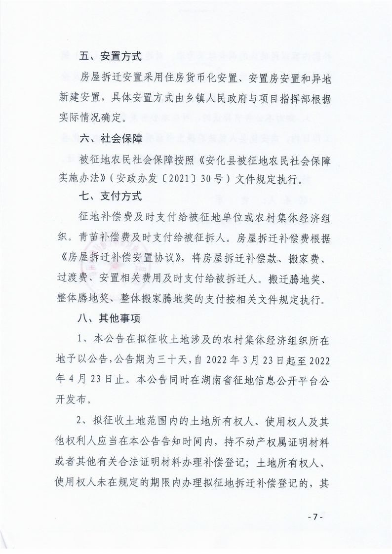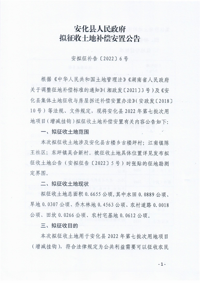 安化县2022年第七批次用地项目(增减挂钩)项目拟征收土地补偿安置公告