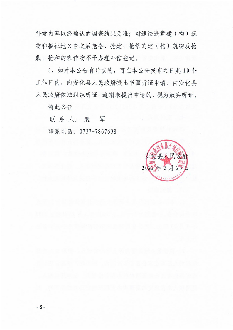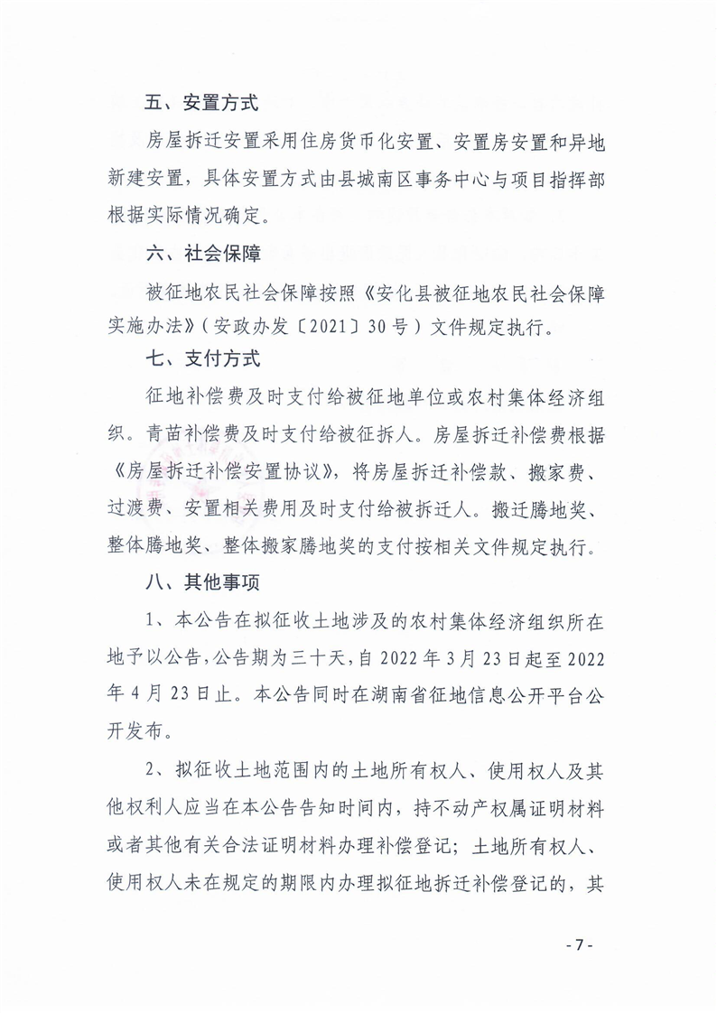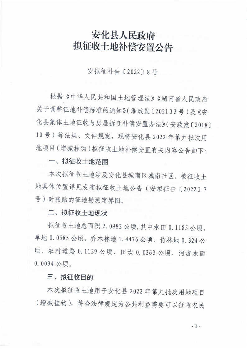 安化县2022年第九批次用地项目(增减挂钩)项目拟征收土地补偿安置公告
