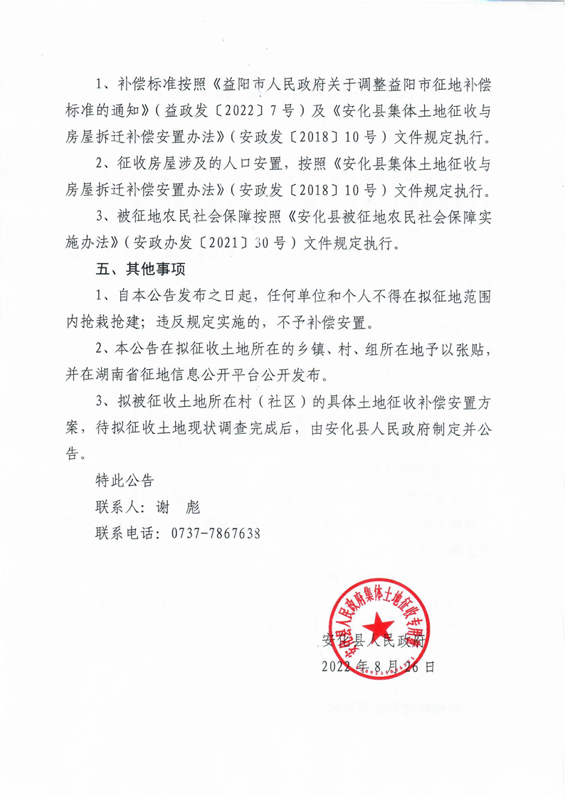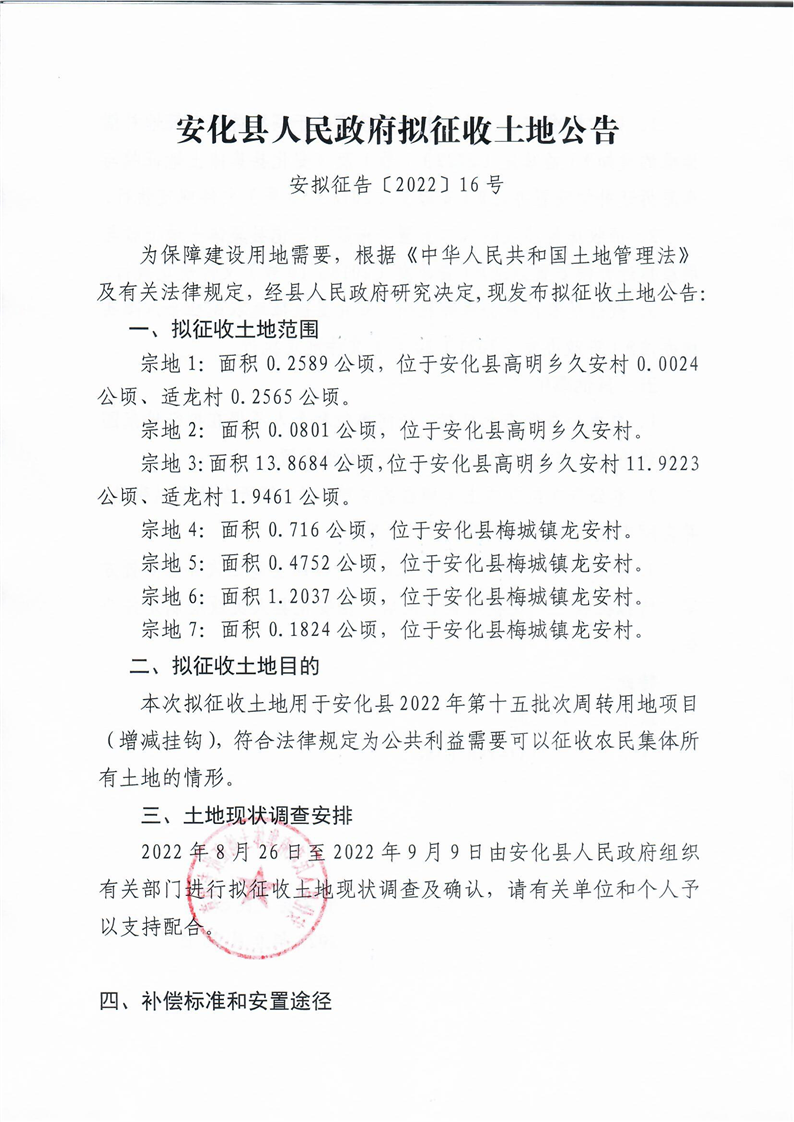 安化县2022年第十五批次用地项目(增减挂钩)拟征收公告
