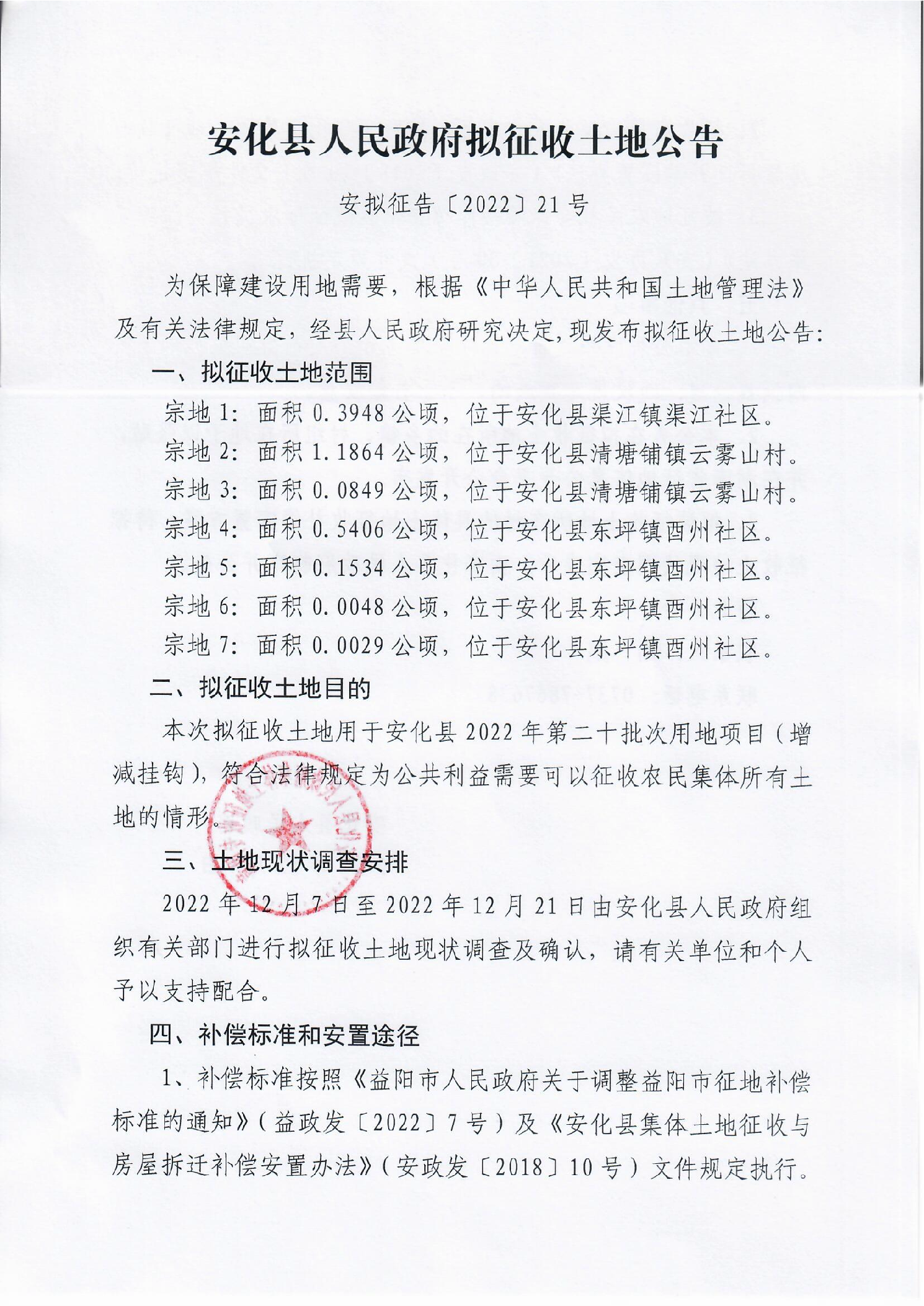 安化县人民政府拟征收土地公告