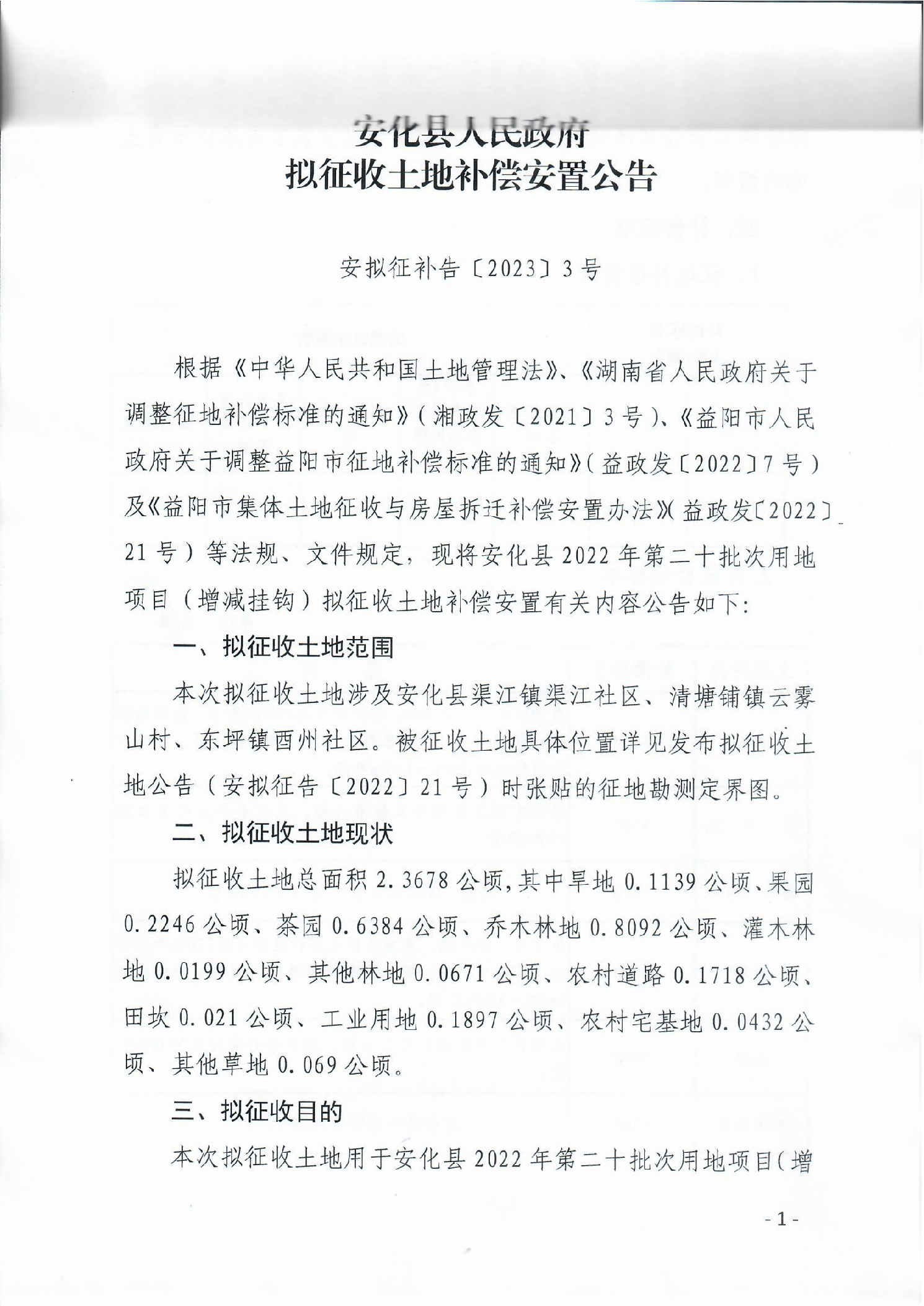 安化县2022年第二十批次用地项目拟征收土地补偿安置公告