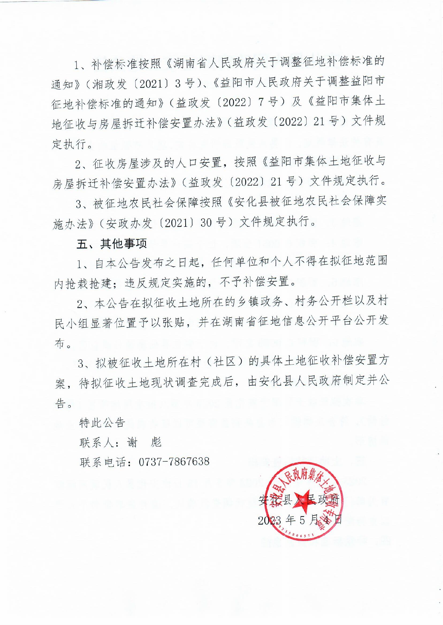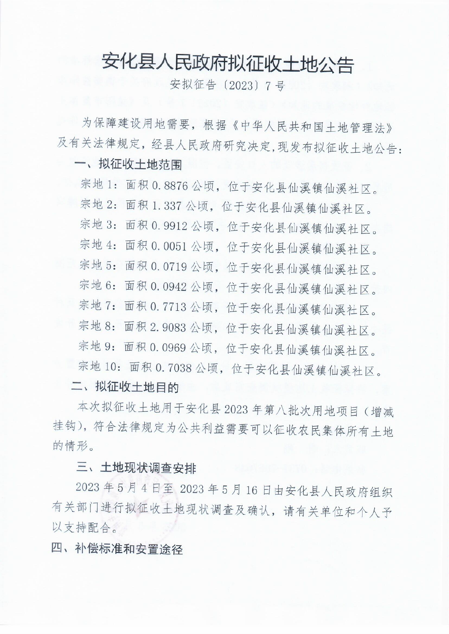 安化县2023年第八批次用地项目(增减挂钩)拟征收公告