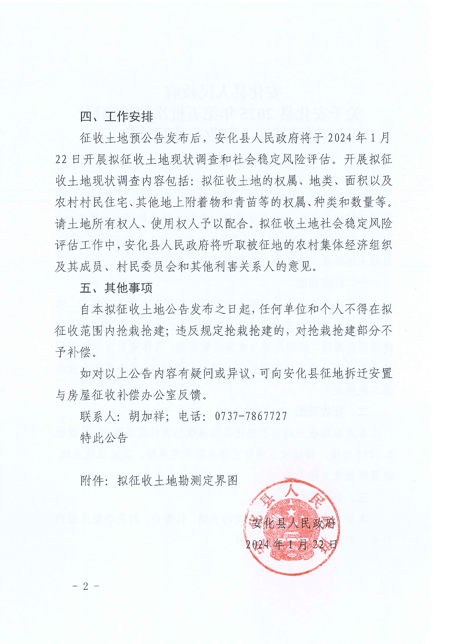 关于安化县2025年第五批次用地项目(增减挂钩)征收土地预公告