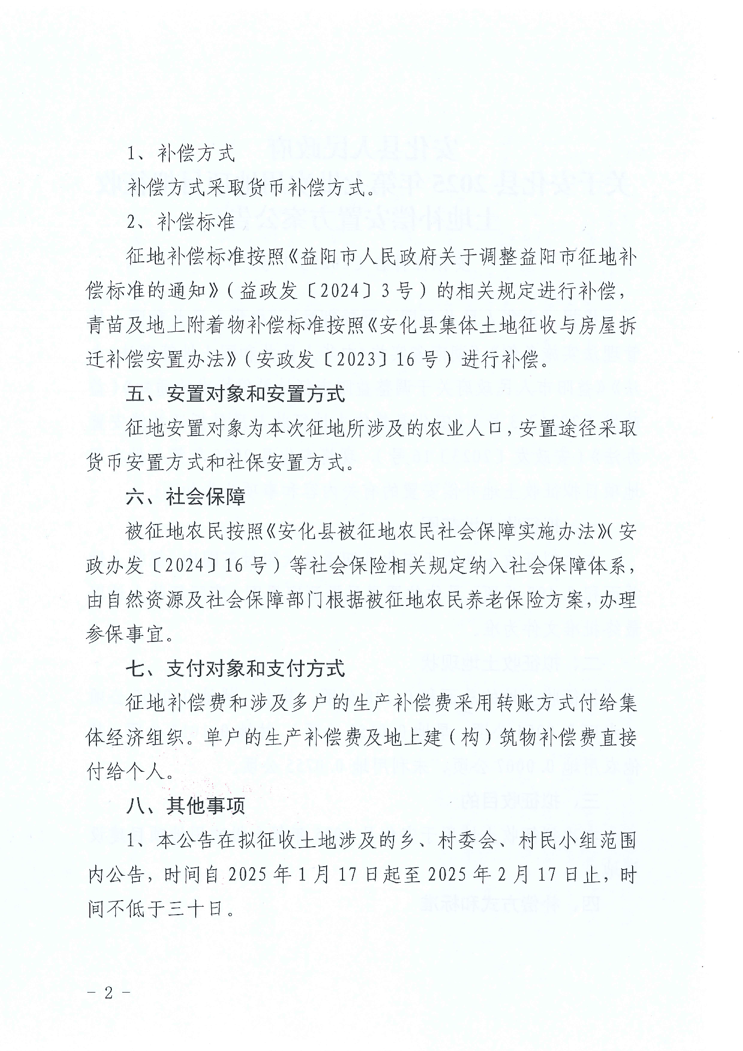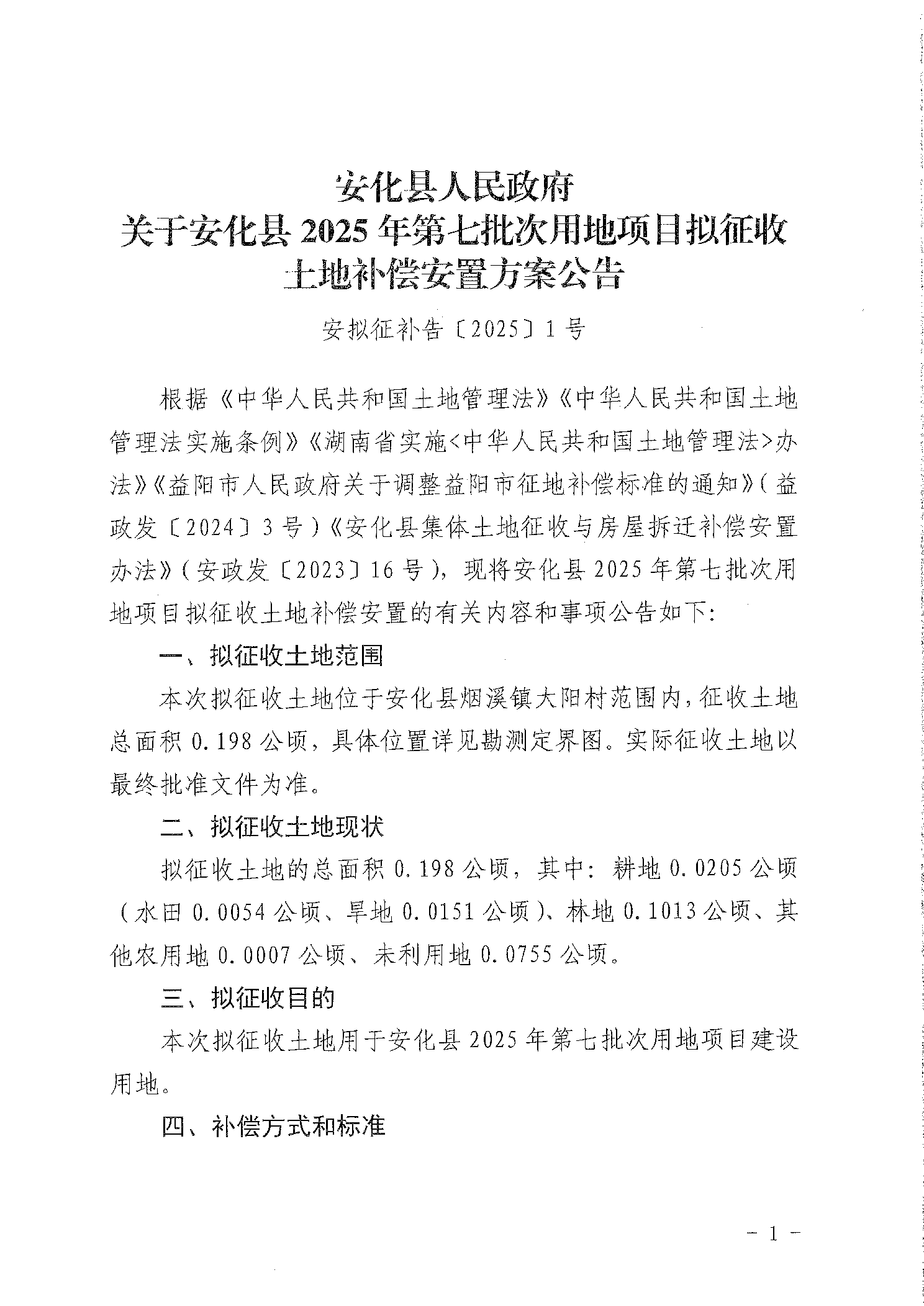 关于安化县2025年第七批次用地项目拟征收土地补偿安置方案公告