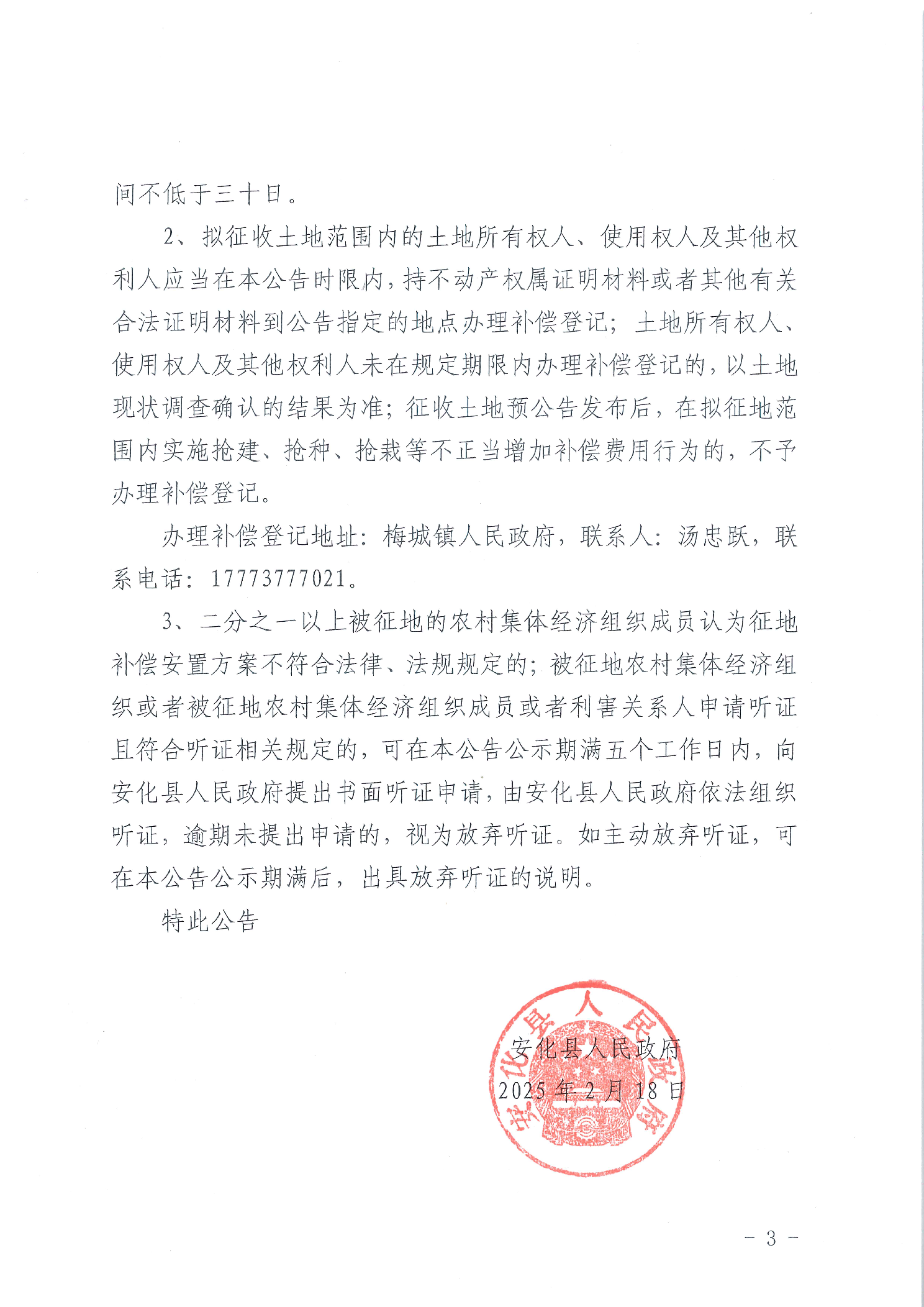 关于安化县2025年第十一批次用地项目(增减挂钩)拟征收土地补偿安置方案公告