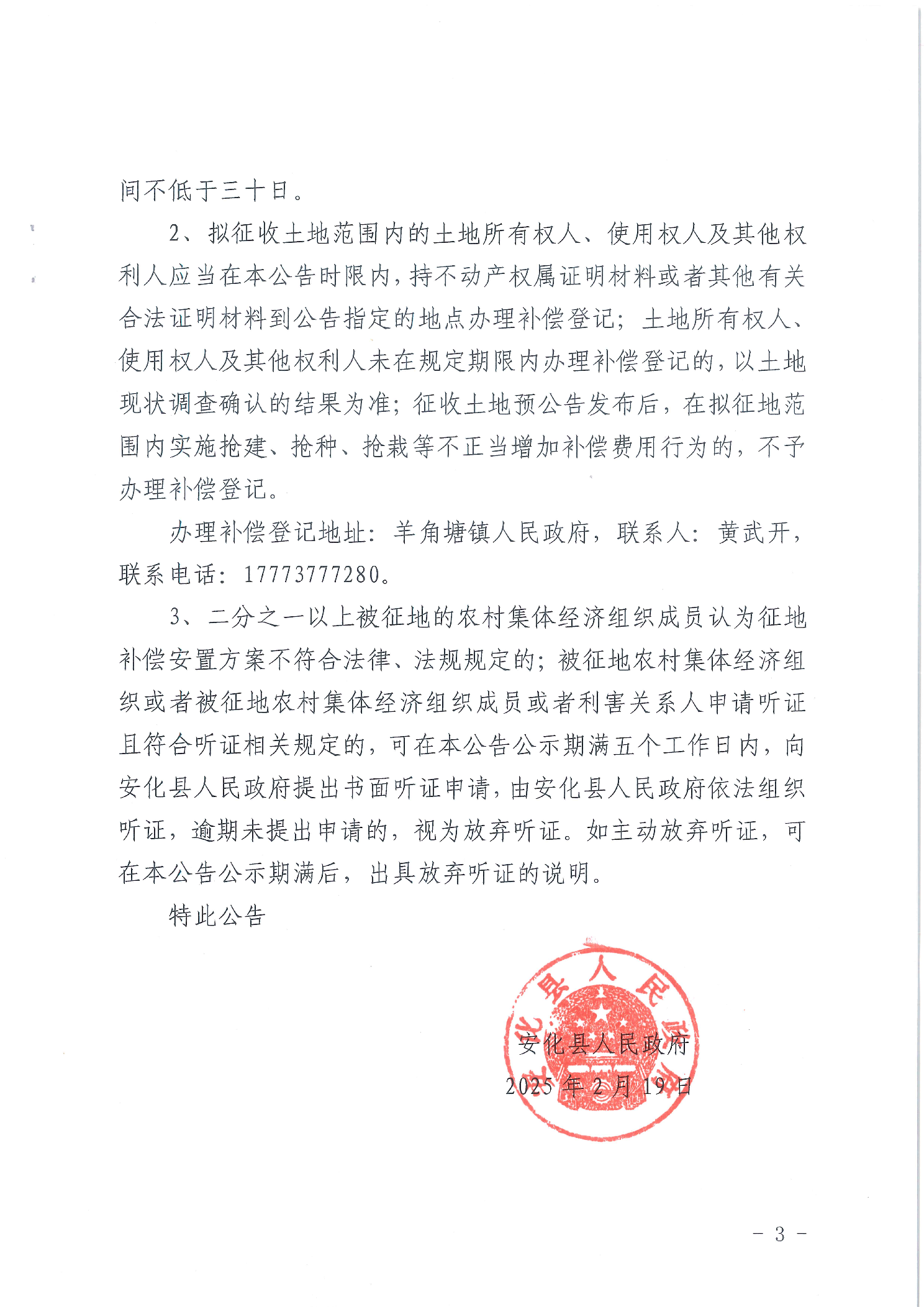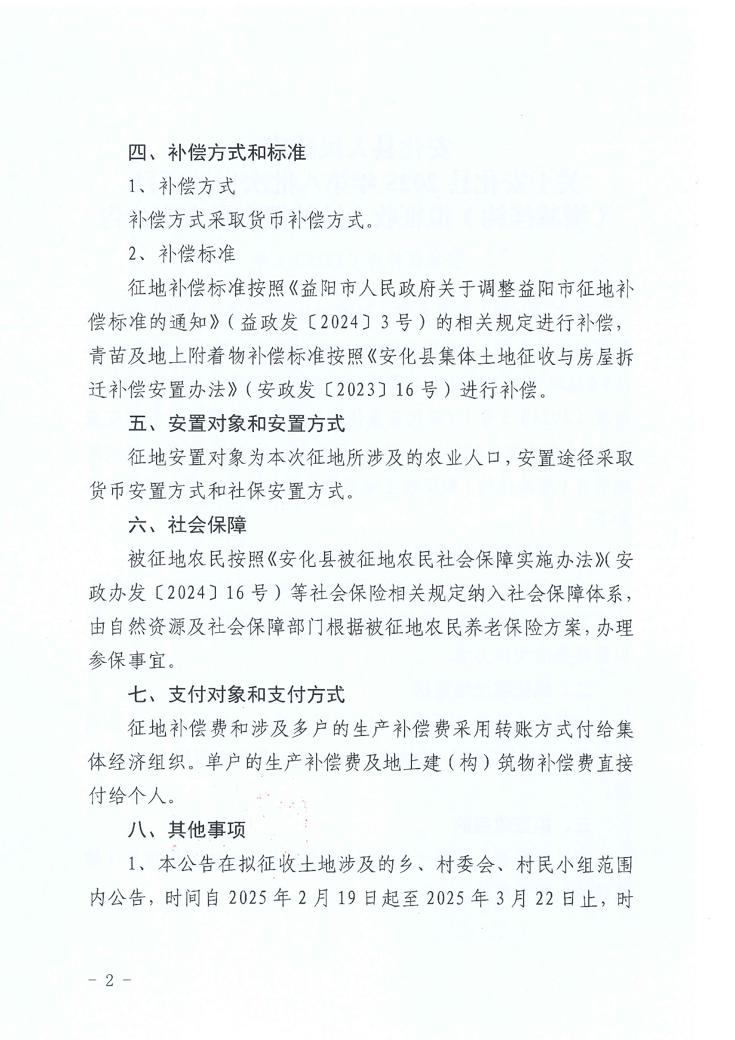 关于安化县2025年第八批次用地项目(增减挂钩)拟征收土地补偿安置方案公告
