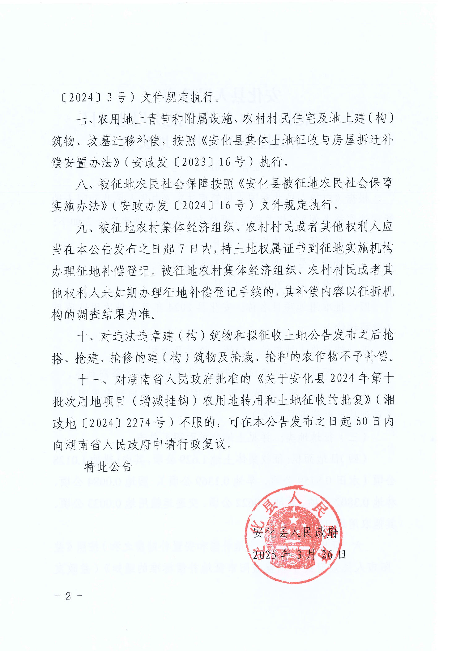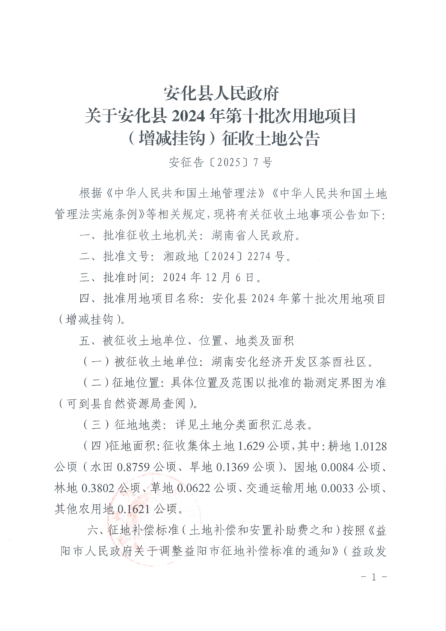 安化县2024年第十批次用地项目(增减挂钩)征收土地公告