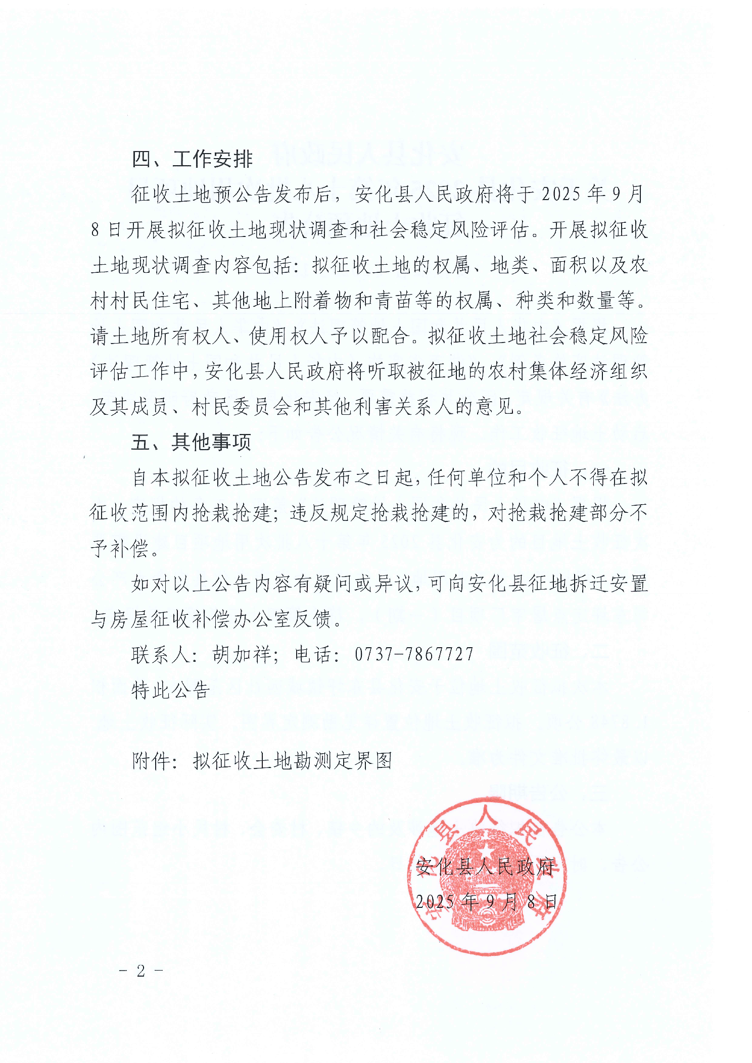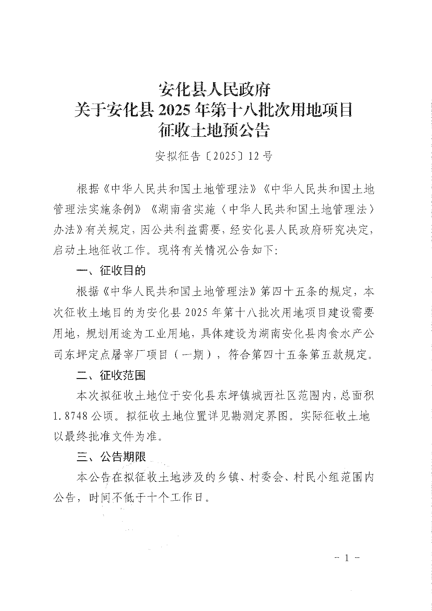 关于安化县2025年第十八批次用地项目征收土地预公告